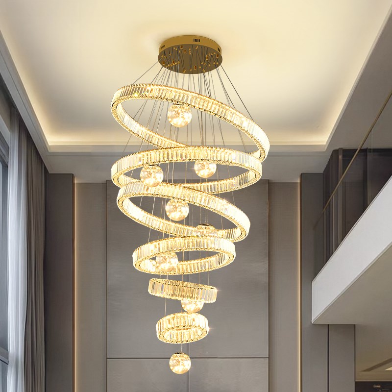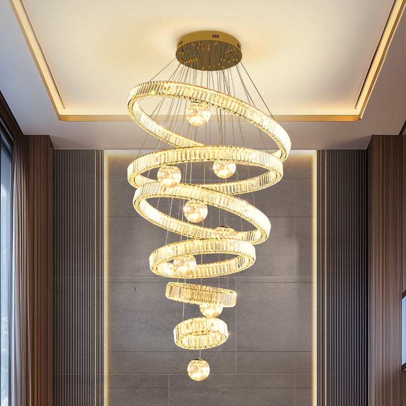 别墅挑空客厅吊灯轻奢现代复式楼水晶灯loft旋转楼梯吊灯2025新款