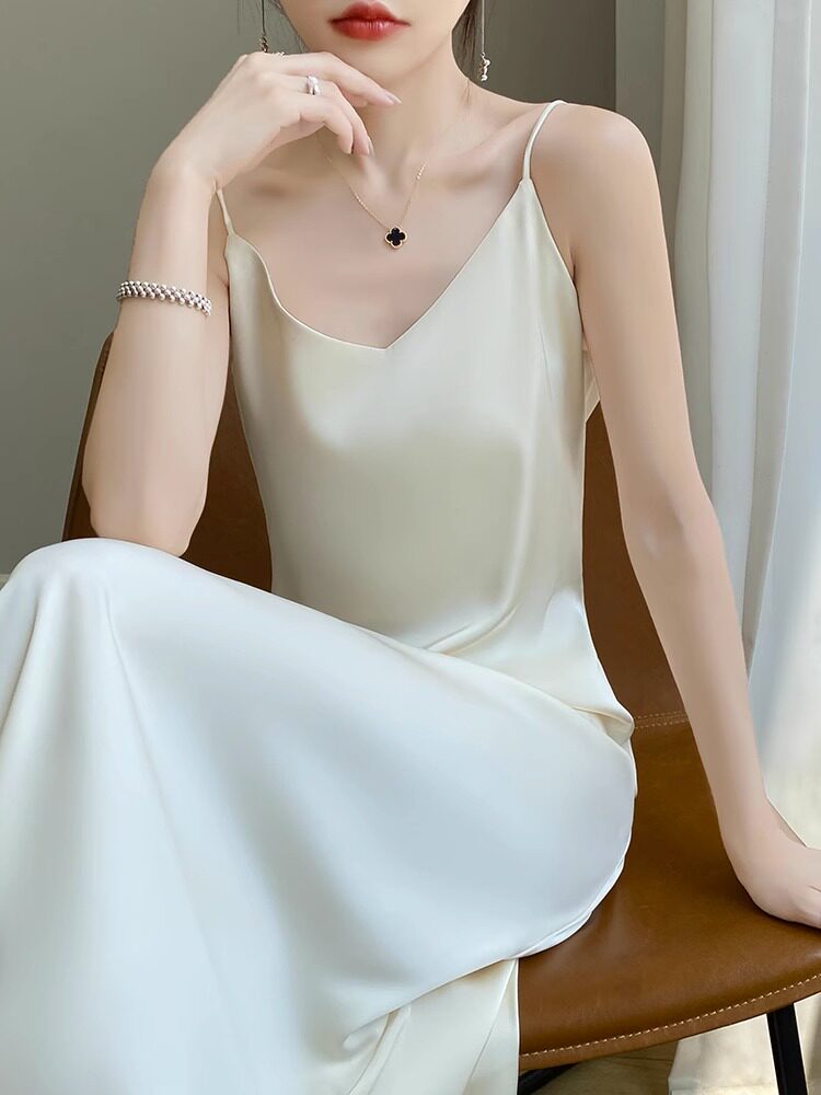 三醋酸真丝吊带连衣裙女夏宽松内搭长裙法式设计感桑蚕丝缎面小众