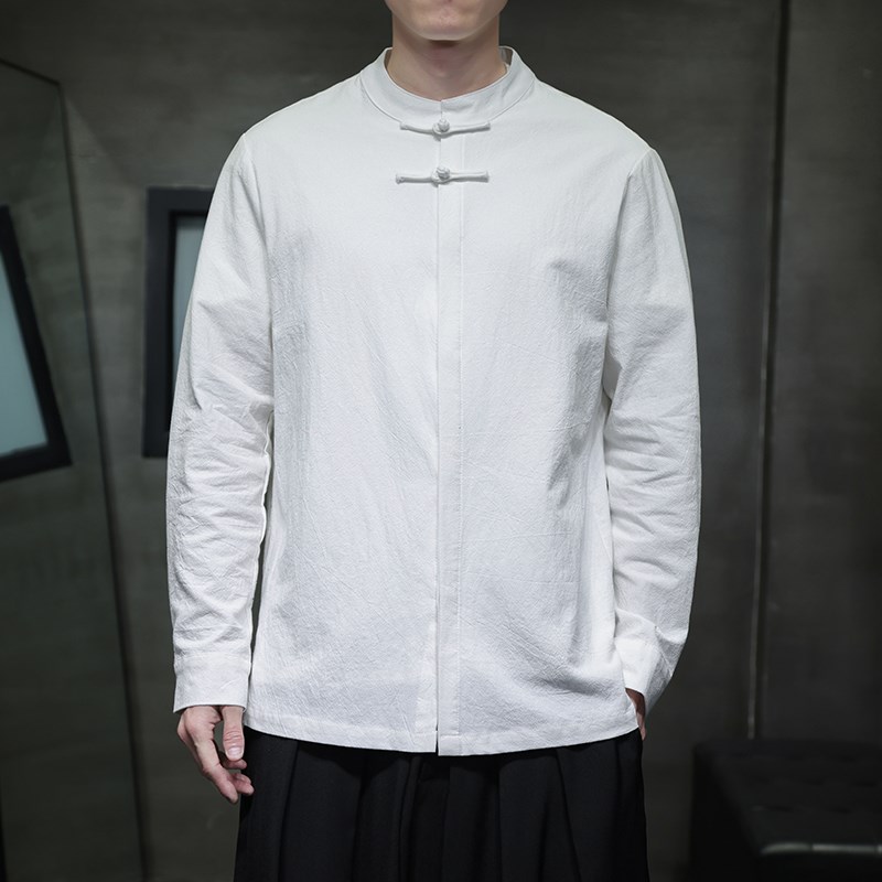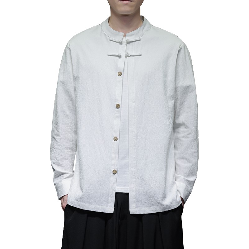白色衬衫男长袖春秋季新款亚麻外套中国风唐装新中式男装棉麻衬衣