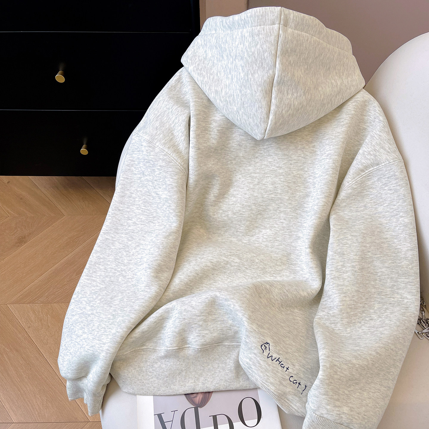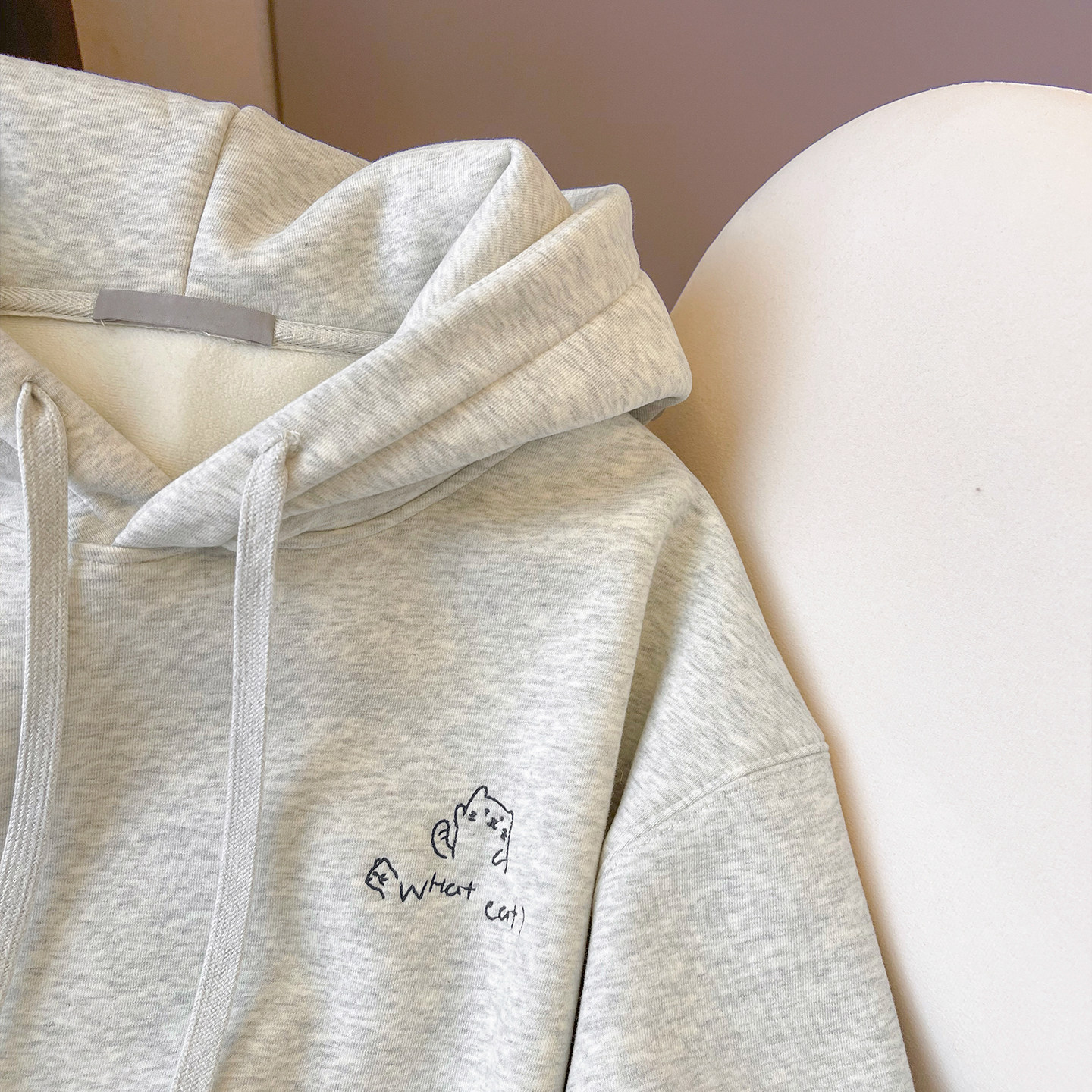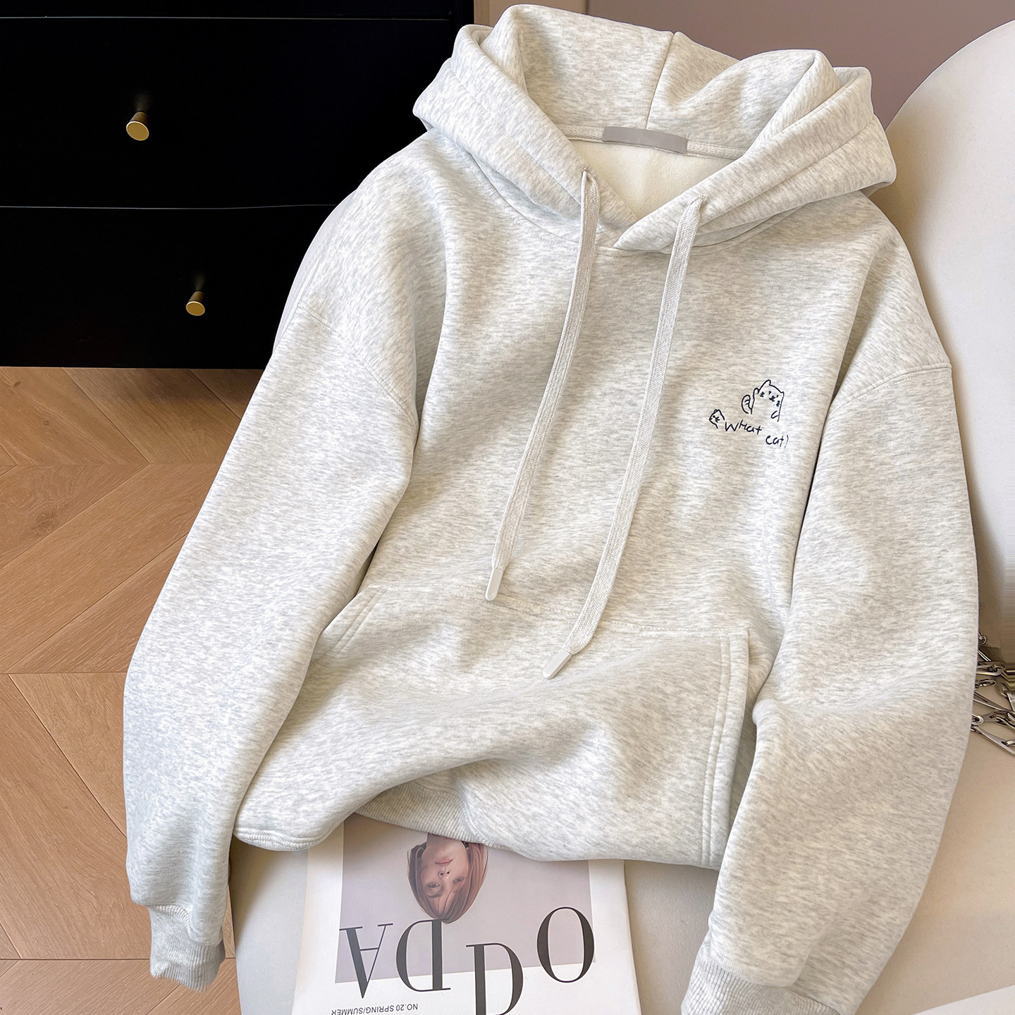 小C家 小猫刺绣连帽加绒卫衣女2025新款秋冬加厚韩系宽松套头上衣