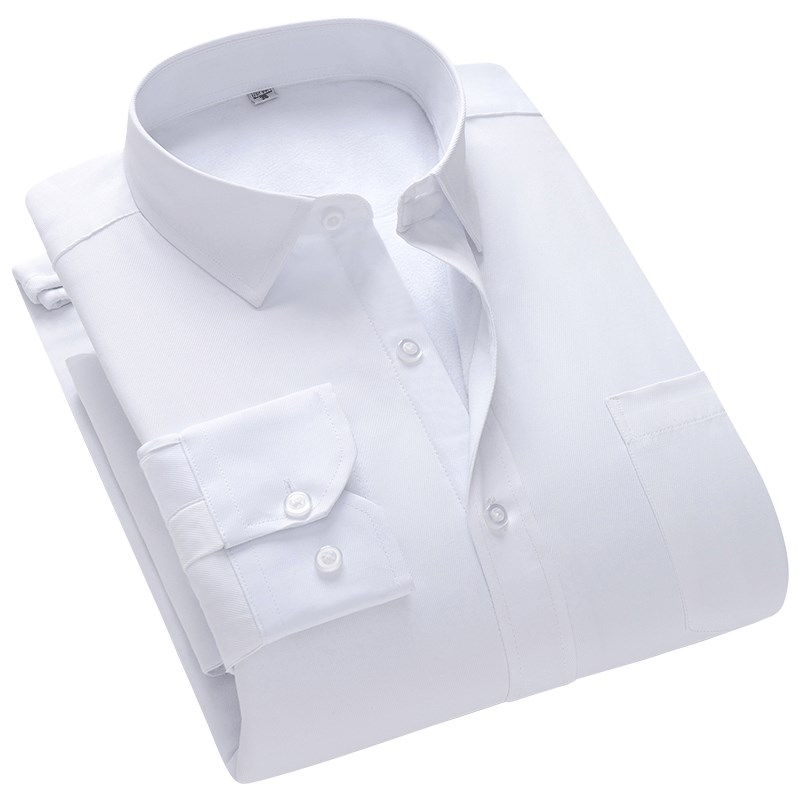 冬季加绒保暖衬衫男长袖商务职业装工装纯蓝色衬衣男打底衫工作服