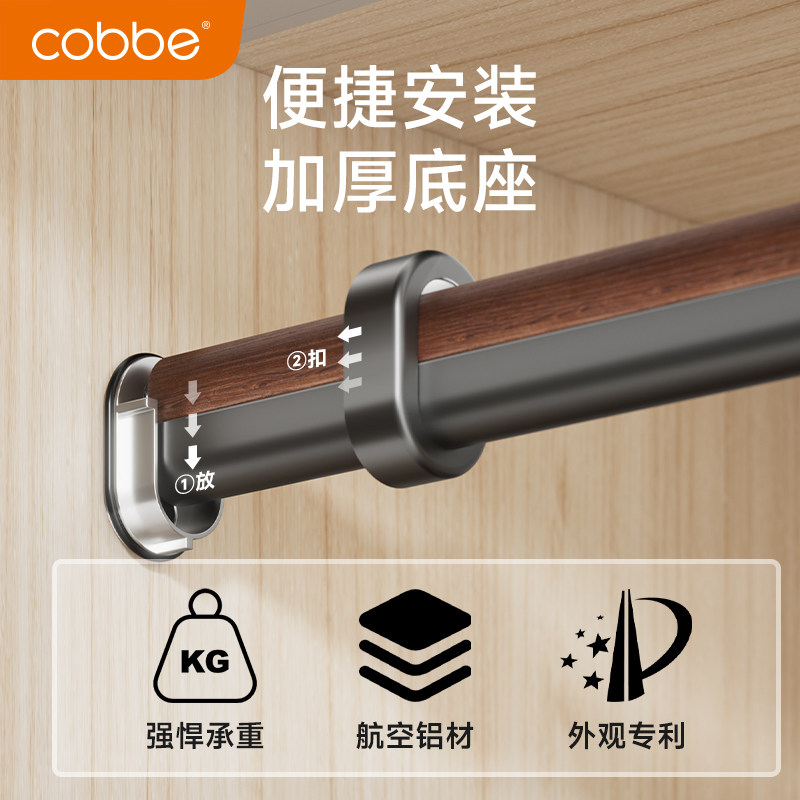 卡贝新胡桃木铝合金挂衣杆送法兰