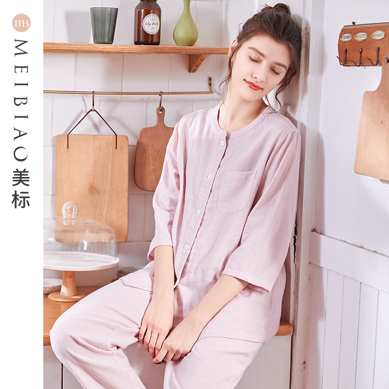 美标女七分袖纯棉睡衣套装春秋薄款棉纱休闲可外穿全棉质家居服夏