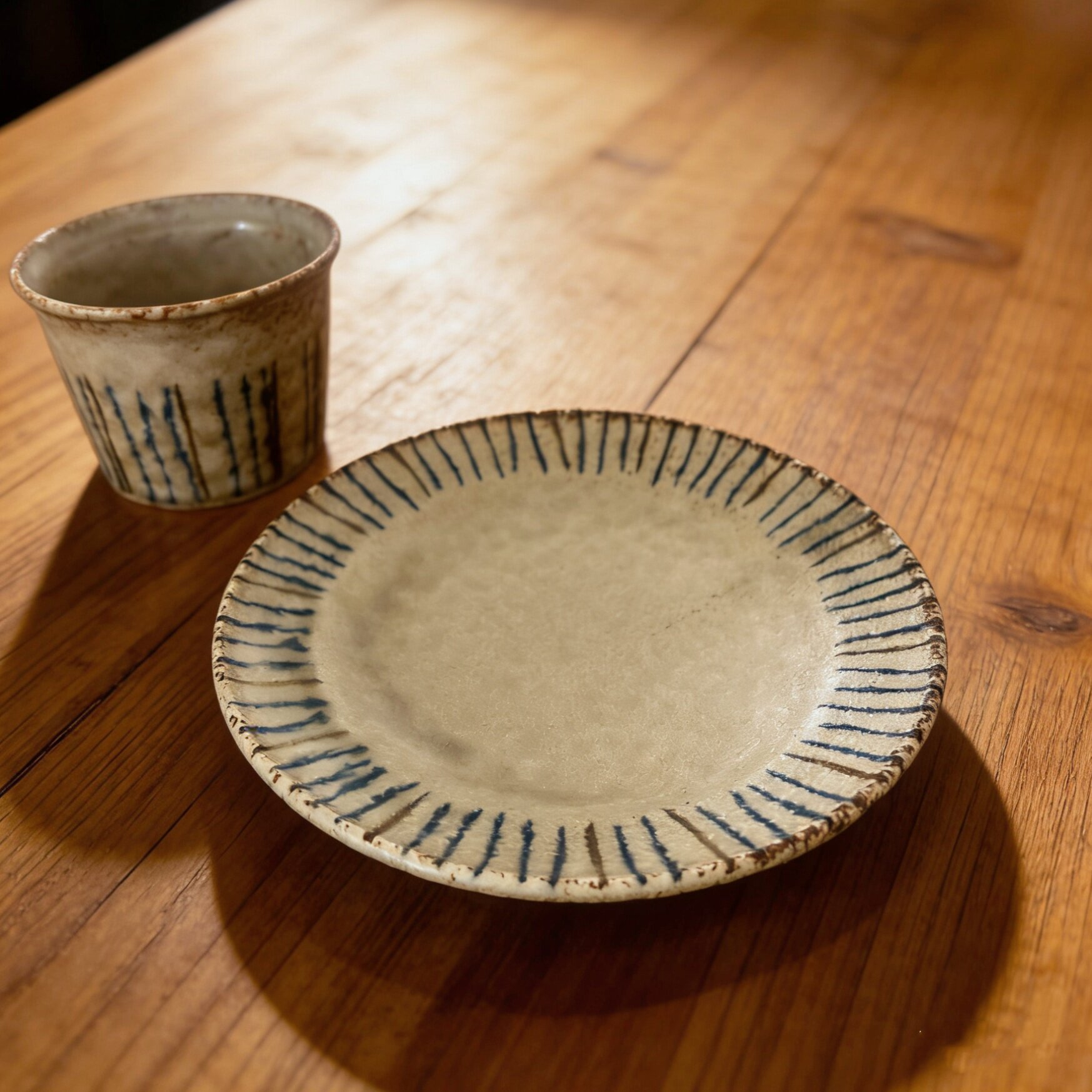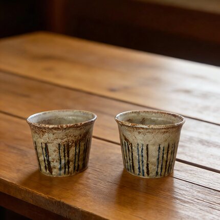 日本手作条纹进口陶瓷杯手握咖啡茶杯侘寂复古做旧风猪口杯下午茶