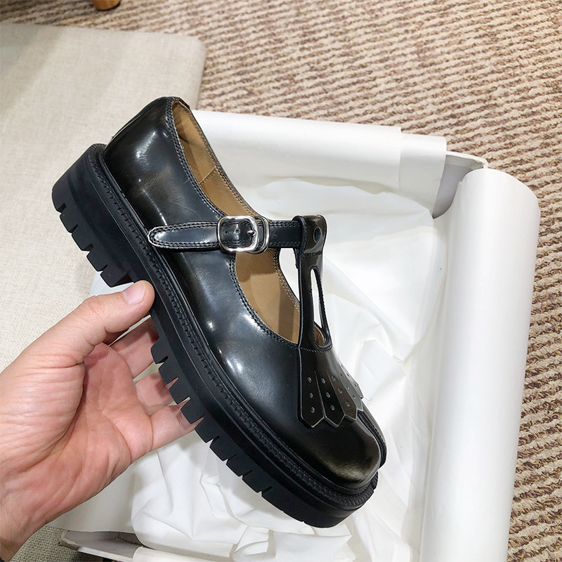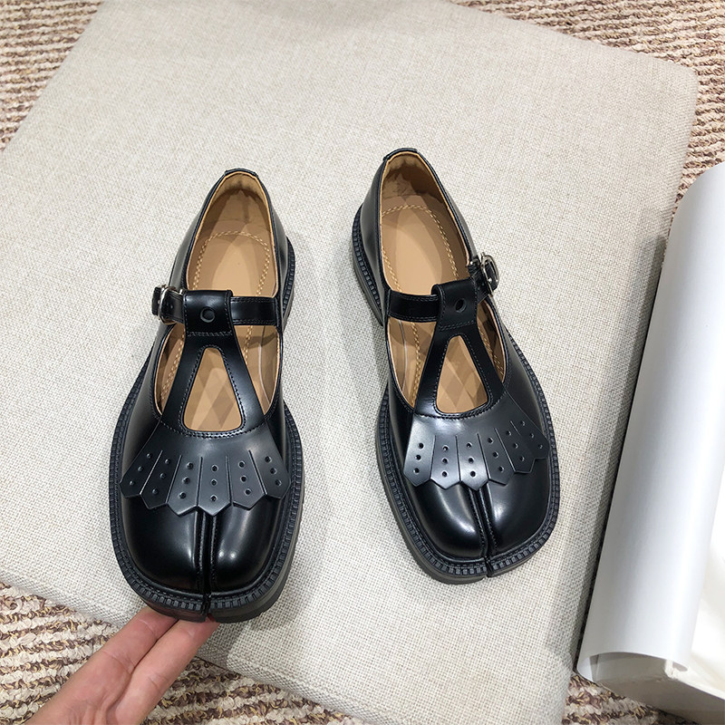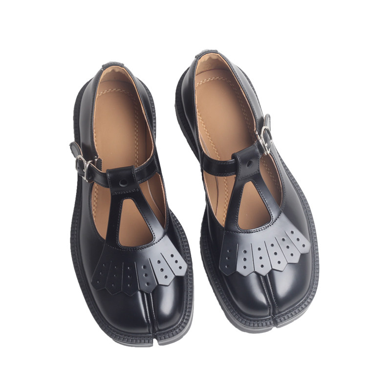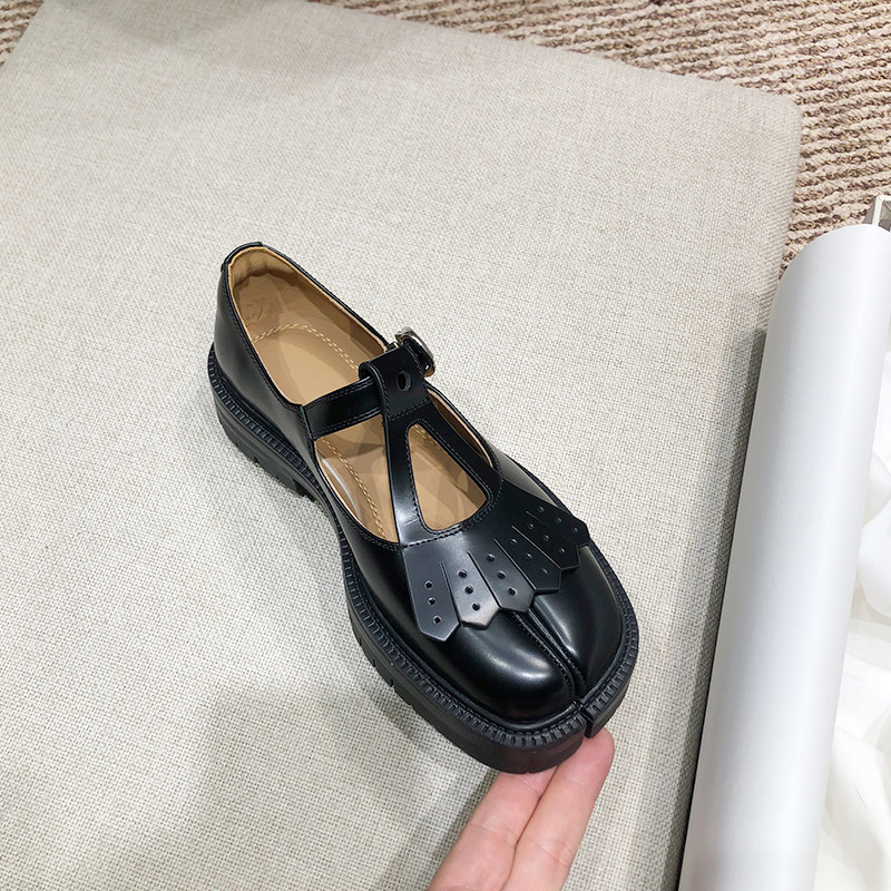 流苏檫色分趾厚底玛丽珍小皮鞋