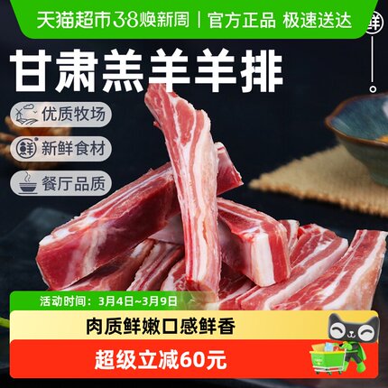 祁连天宝甘肃羔羊羊排原切新鲜羊肉竖切羊肋排烤羊排火锅烧烤食材