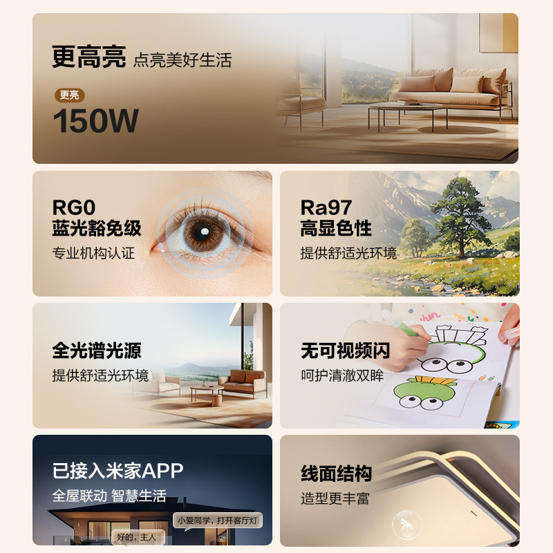 松下LED客厅吸顶灯官方正品2025年现代简约大气全光谱150W主灯具