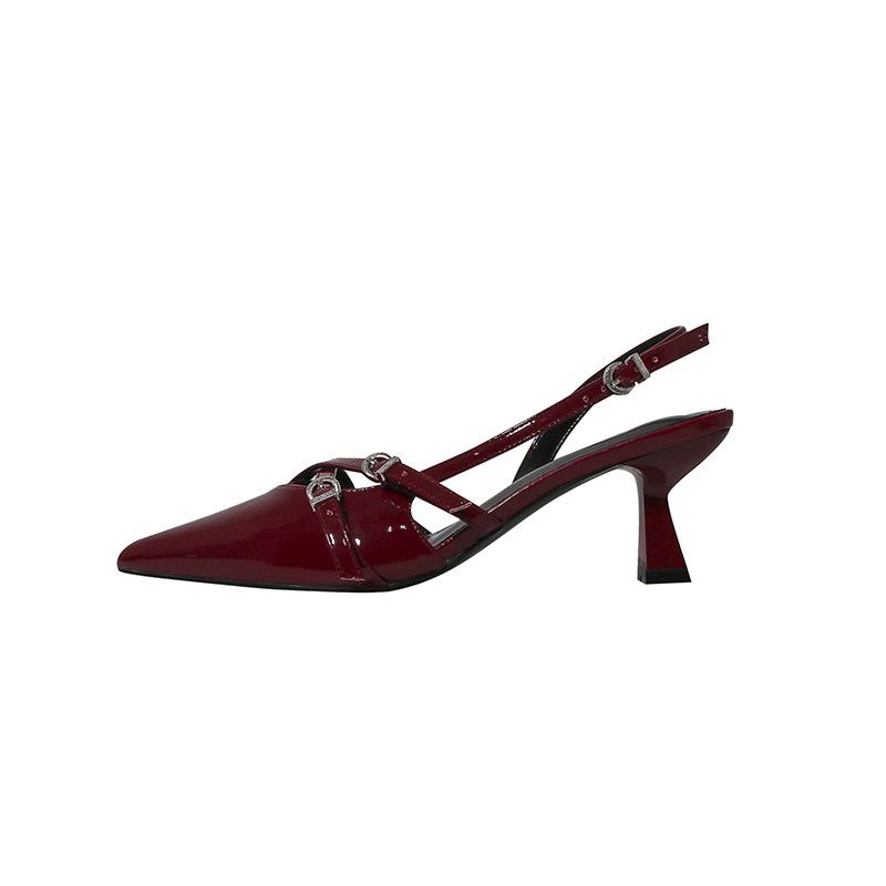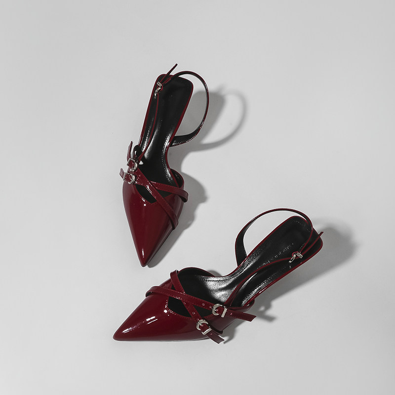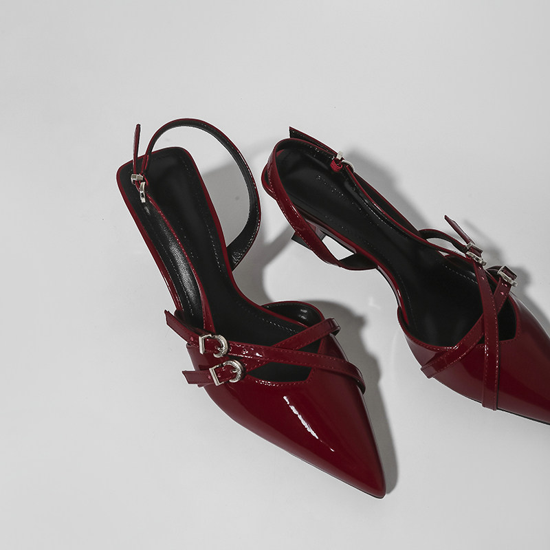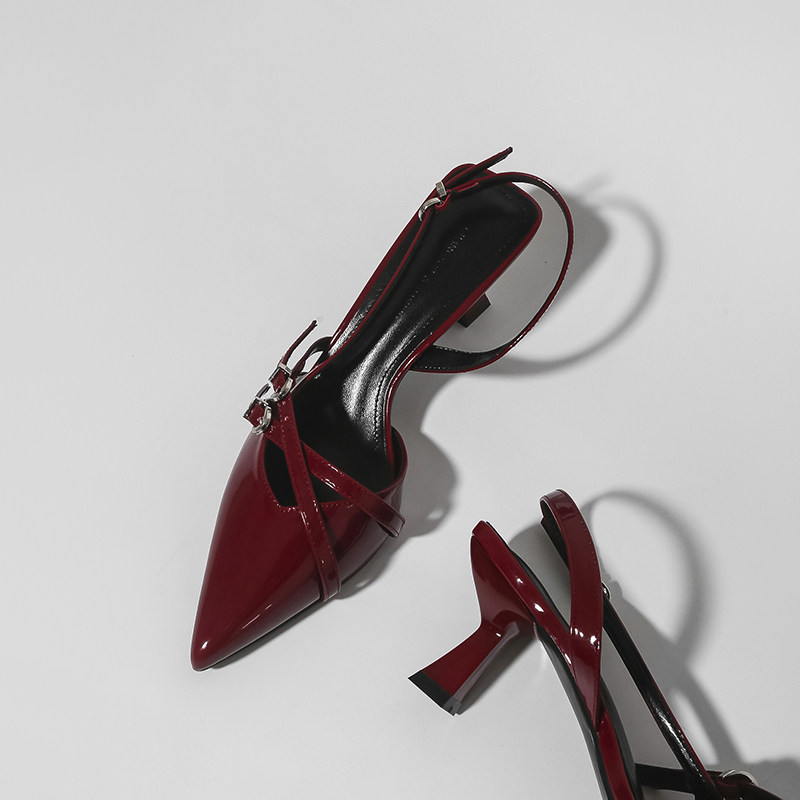 林向晚 张力少女~红色高跟鞋设计感小众气质名媛风一字扣带凉鞋