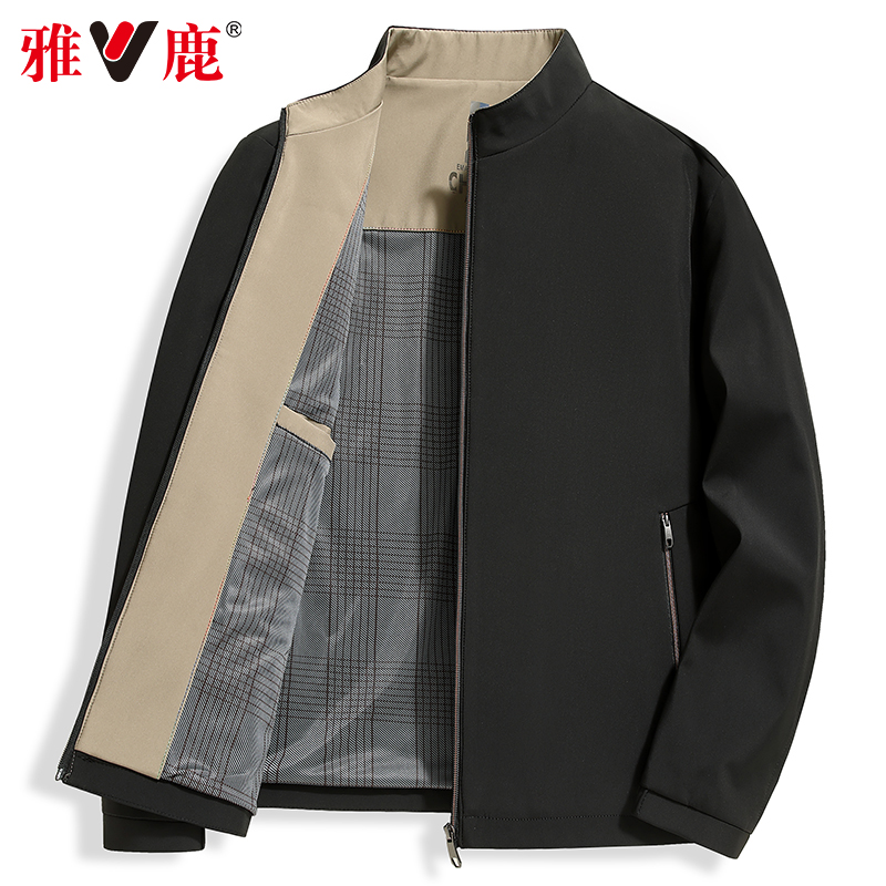 雅鹿男士秋装夹克衫立领商务休闲中老年爸爸装春秋款宽松纯色外套