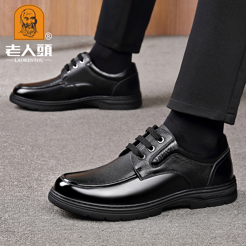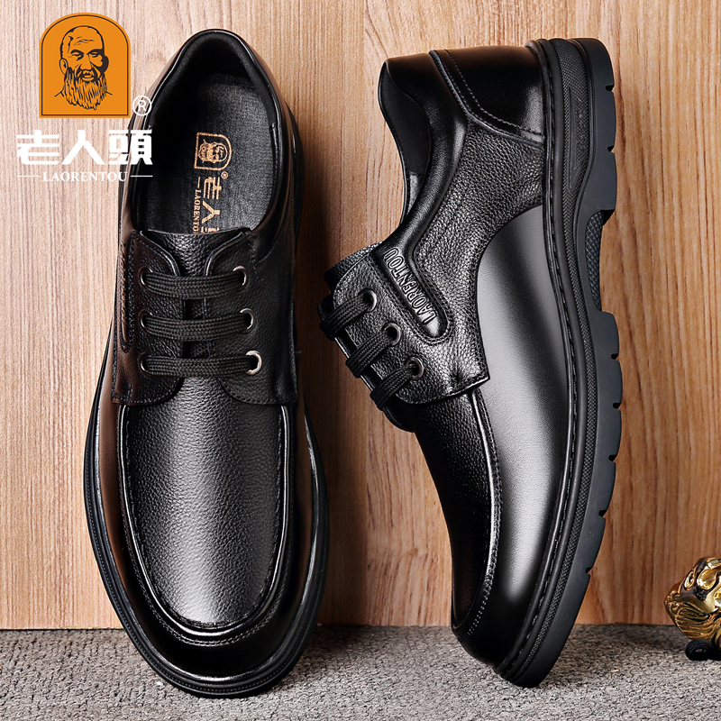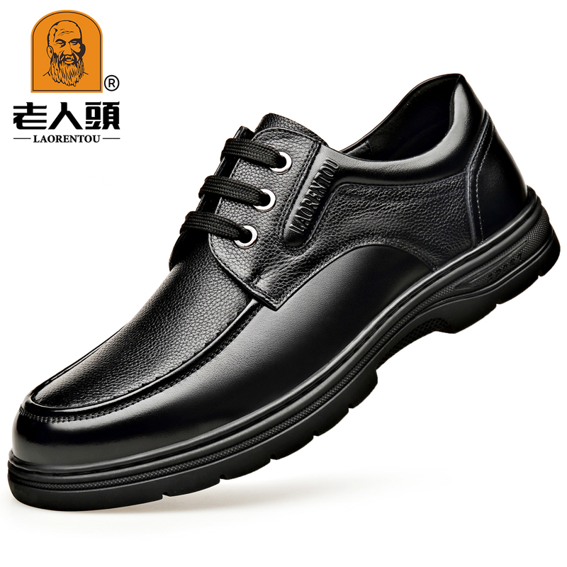 冬季新款老人头男鞋系带牛皮商务正装皮鞋男士圆头真皮厚底爸爸鞋