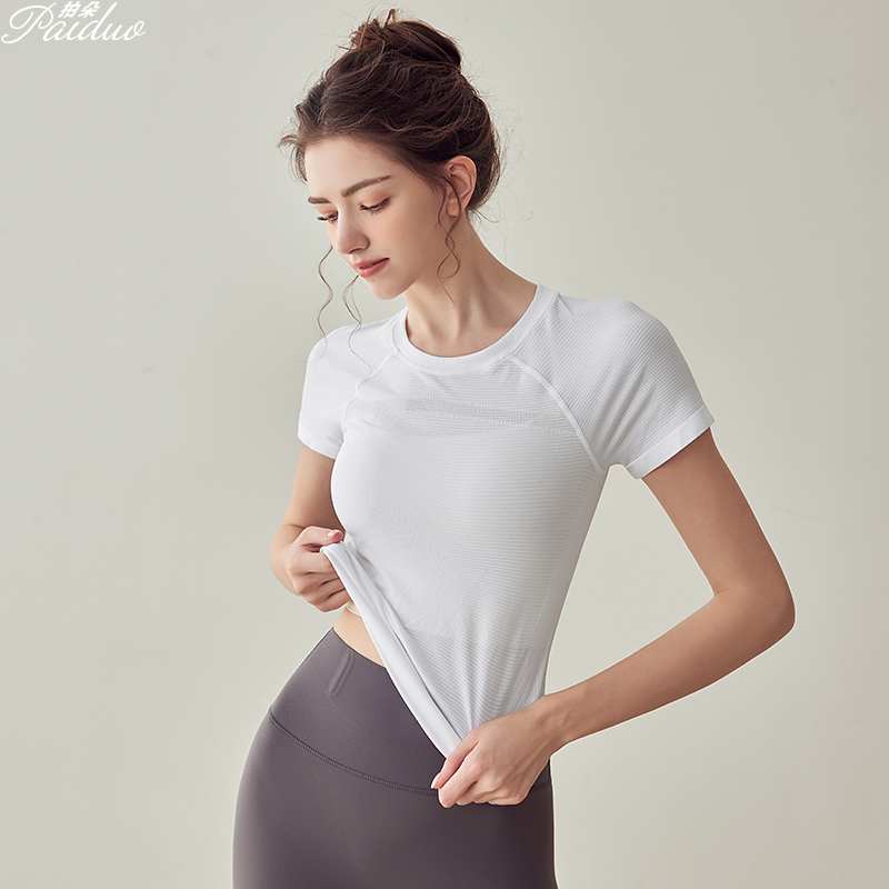 拍朵轻薄透气瑜伽服女圆领T恤紧身显瘦健身短袖跑步运动上衣外穿