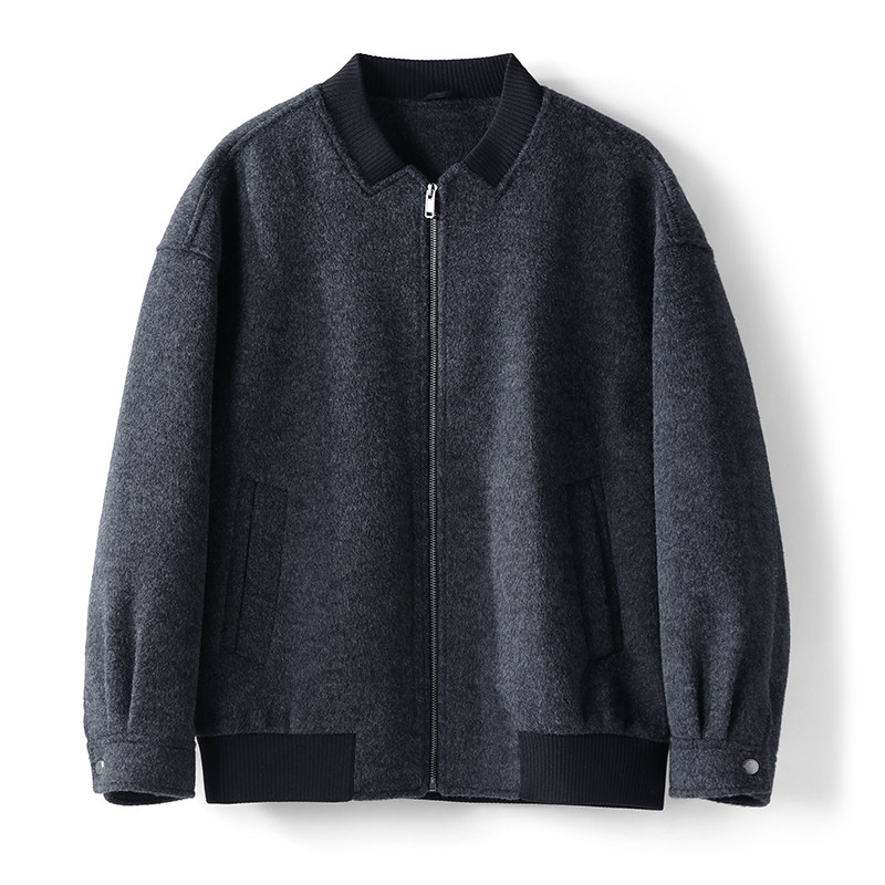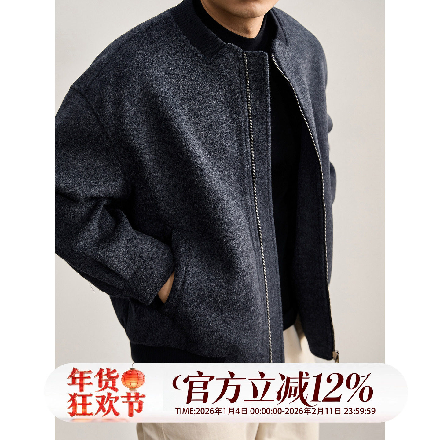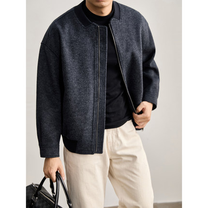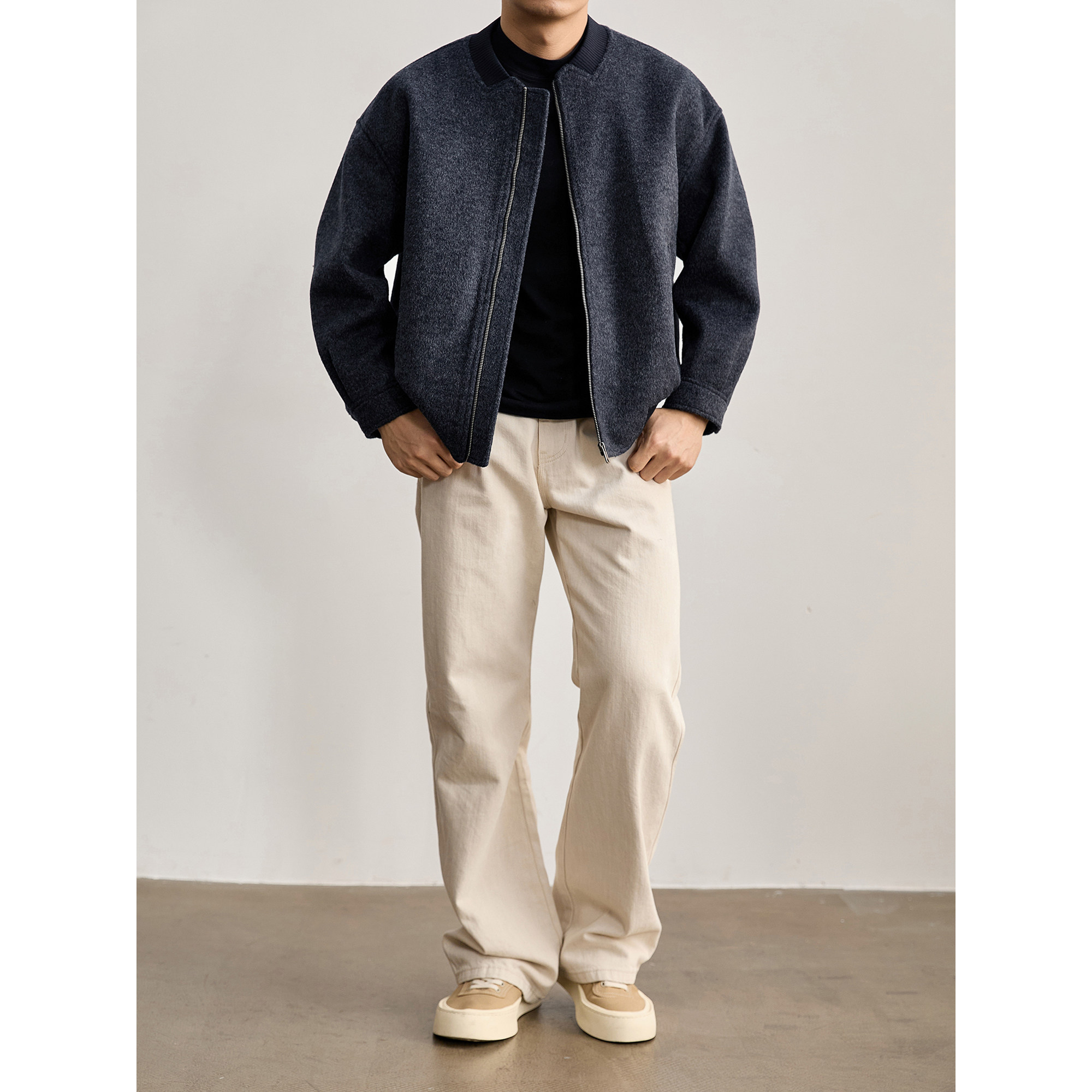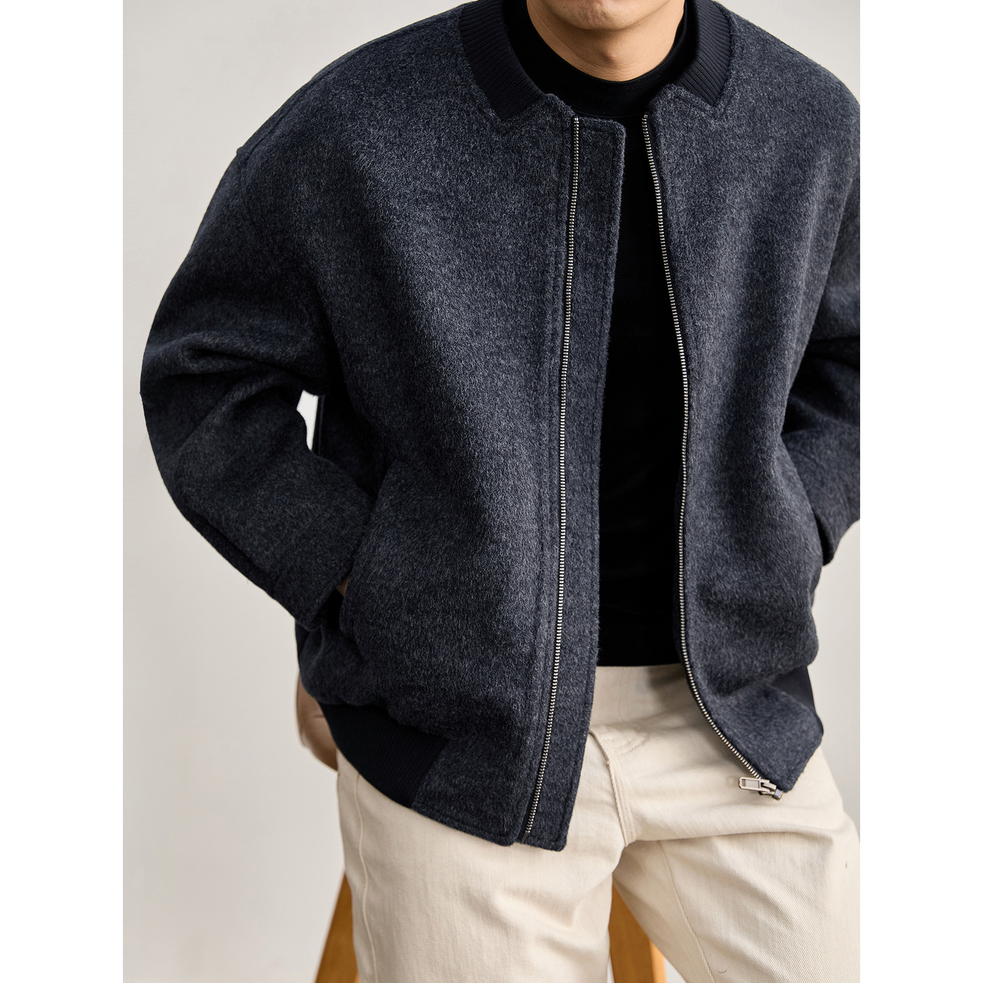 LUUD boxy短宽版型棒球领绵外套男冬季羊毛混纺磨毛肌理毛呢夹克