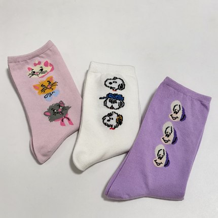 日单 可爱卡通牡蛎宝宝玛丽猫史努比 成人袜子 中筒袜