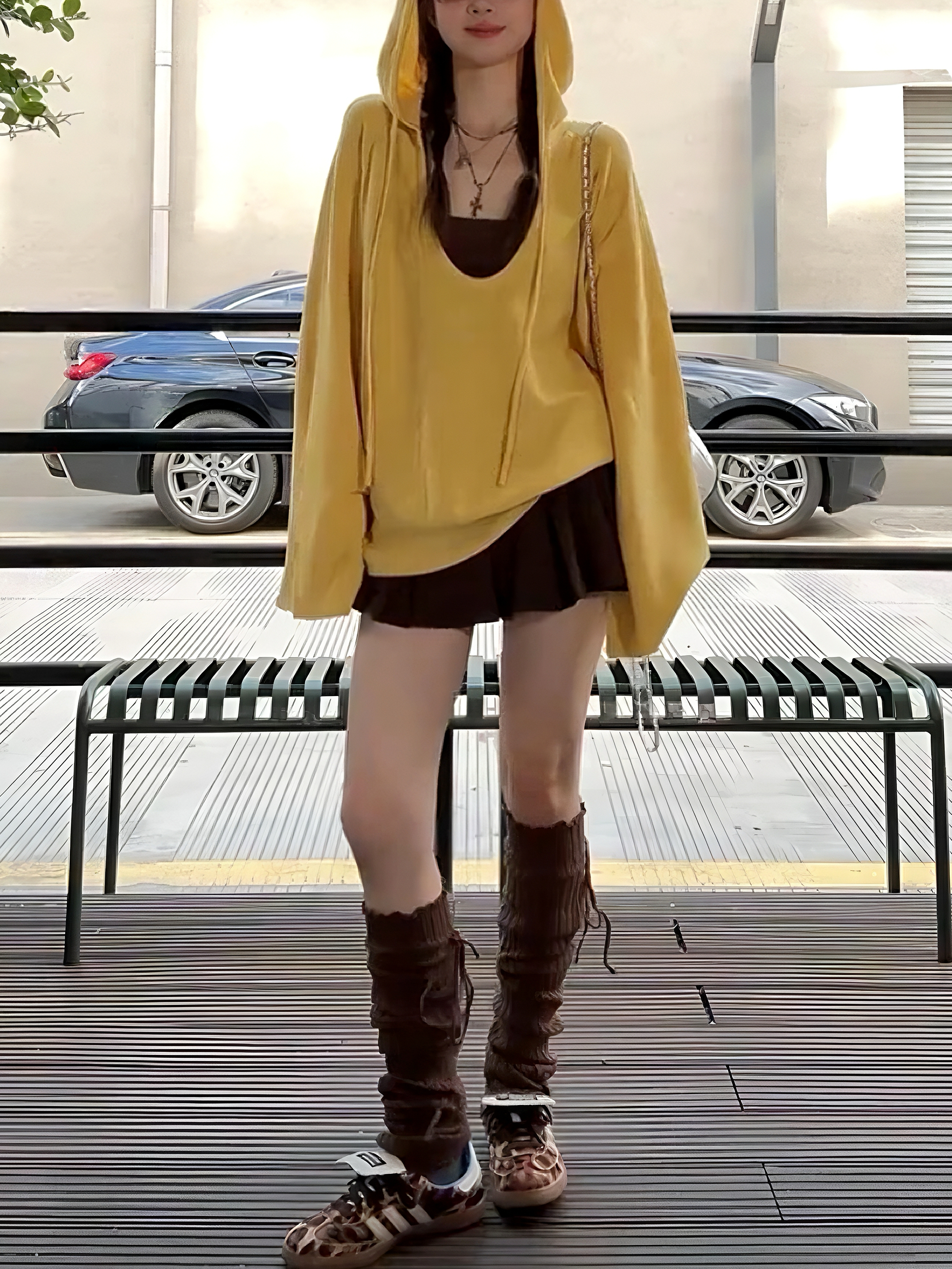 程小姐 大码定制女装2025秋新款高品质韩系连帽卫衣吊带半裙套装