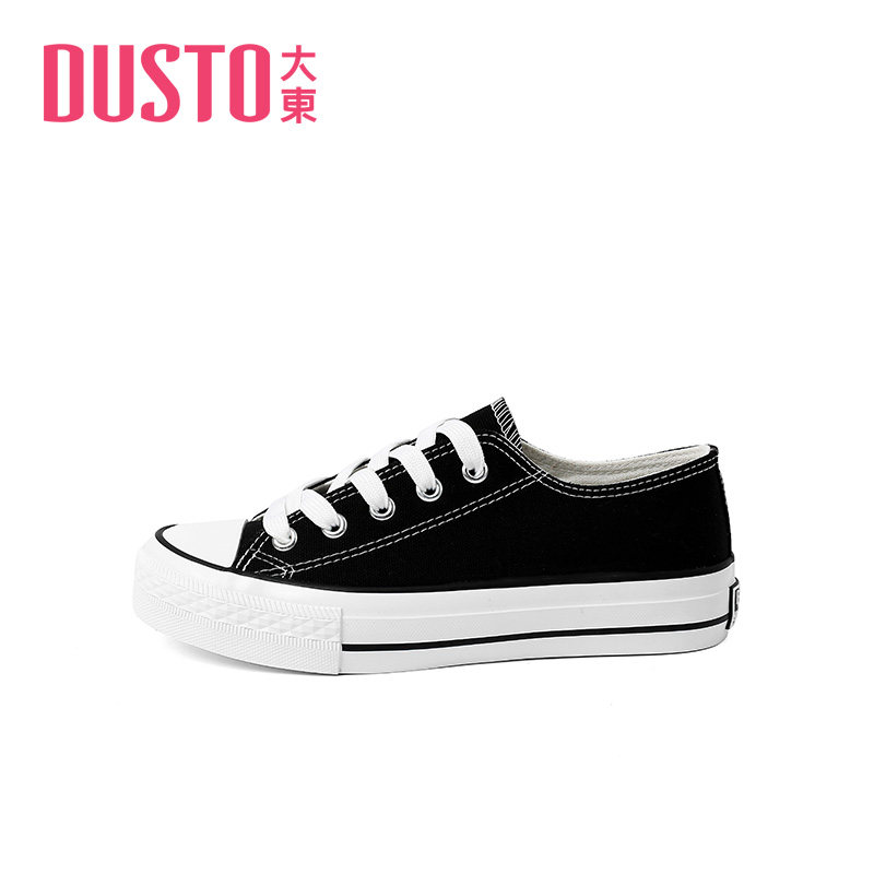 大东新款春季休闲低跟平底圆头系带学生帆布鞋女22C7055样品色差