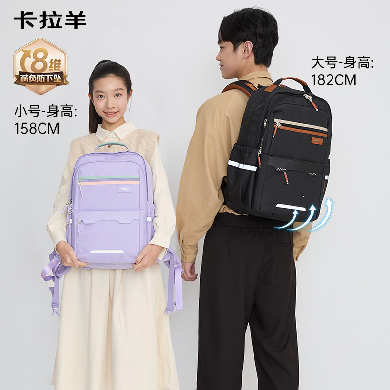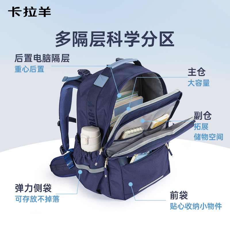 卡拉羊初高中生防下坠云朵书包ProMax多隔层抑菌大容量学生双肩包