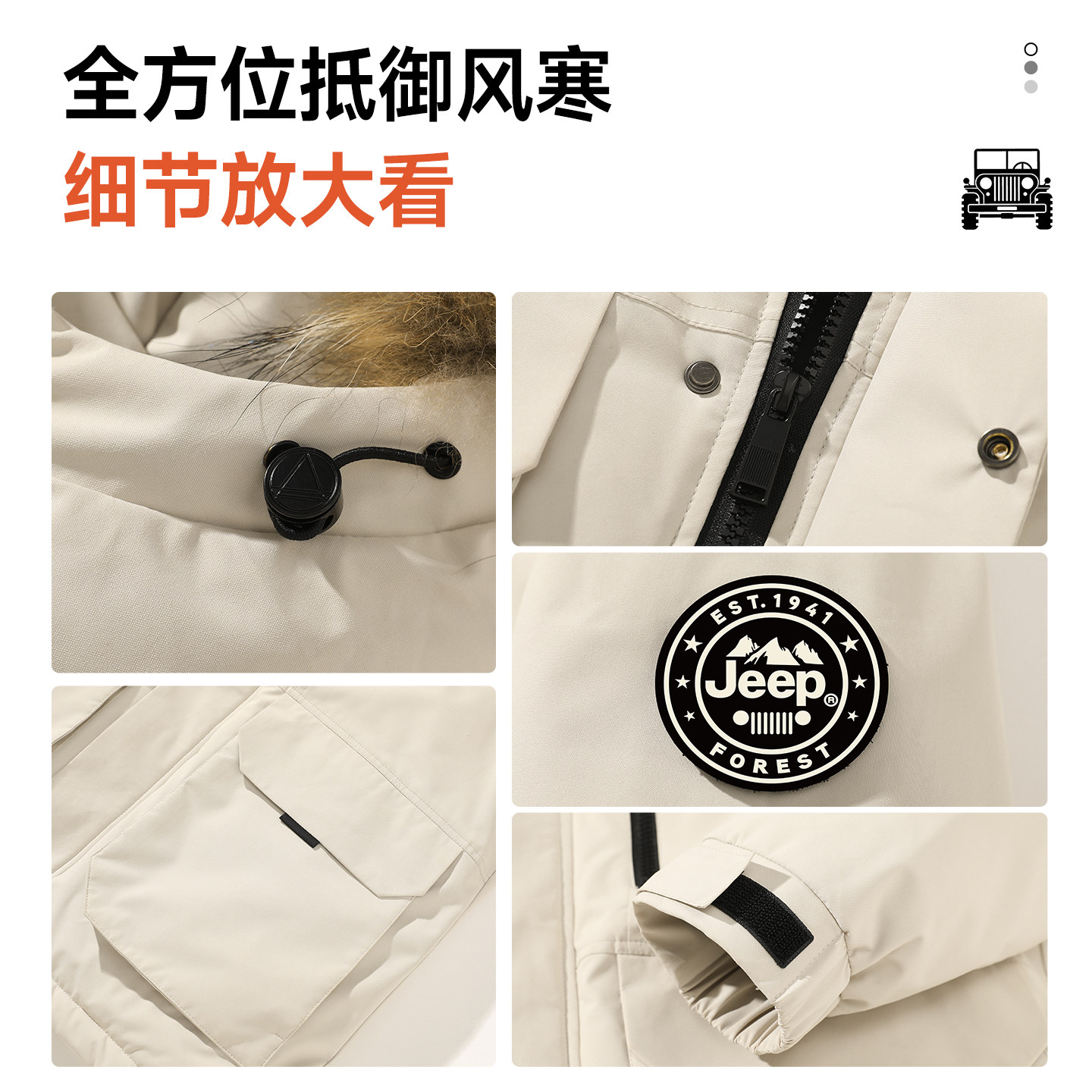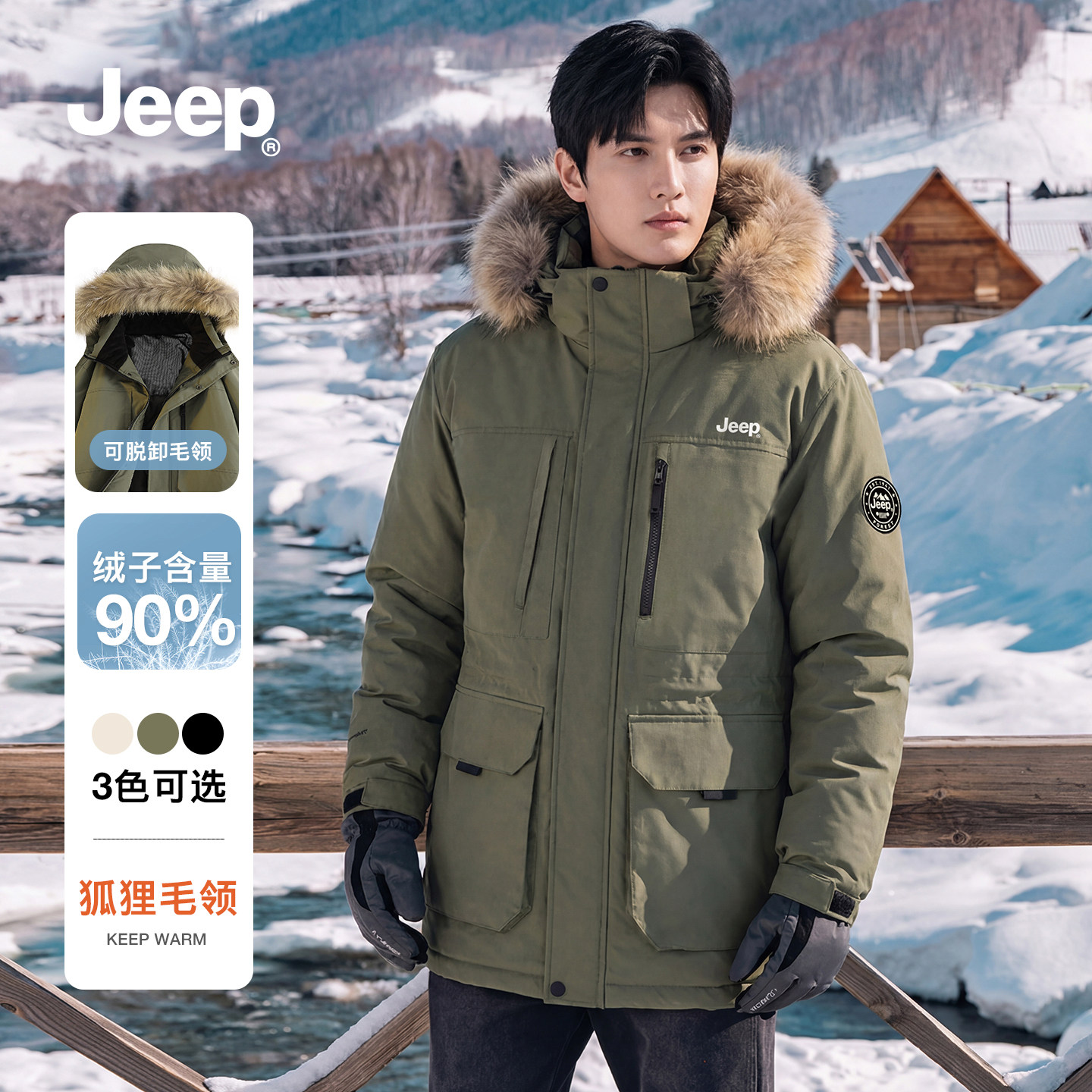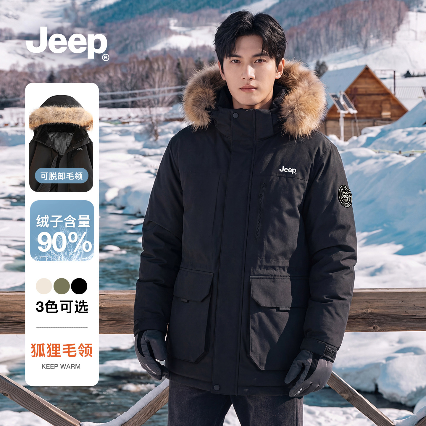 Jeep吉普羽绒服冬季男士户外极寒加厚保暖大毛领外套男派克滑雪服