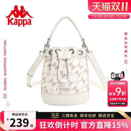 Kappa卡帕 正品新款皮质感水桶包手提斜挎单肩包时尚潮流圆桶女包