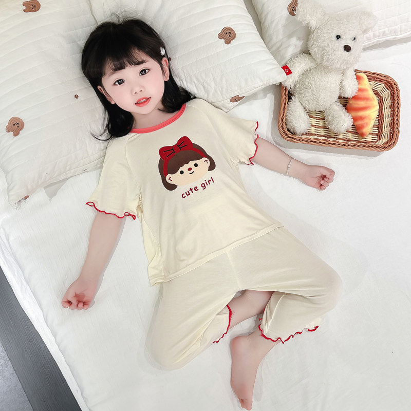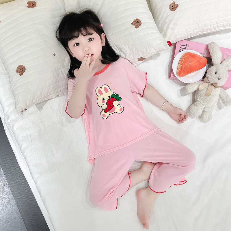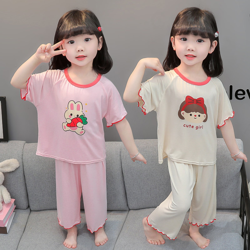 女童莫代尔睡衣夏季新款女中大宝宝薄款儿童短袖空调家居服套装