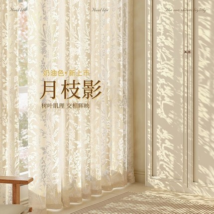 月枝影窗帘遮光2025新款纱帘法式卧室少女高级感透光不透人客厅布