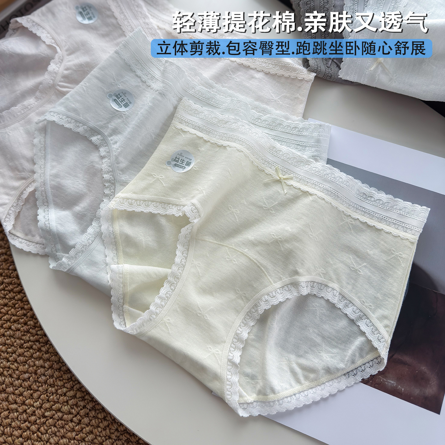 蕾丝内裤女纯棉抑菌加长裆无痕中腰透气2025新款超薄夏季女生内裤