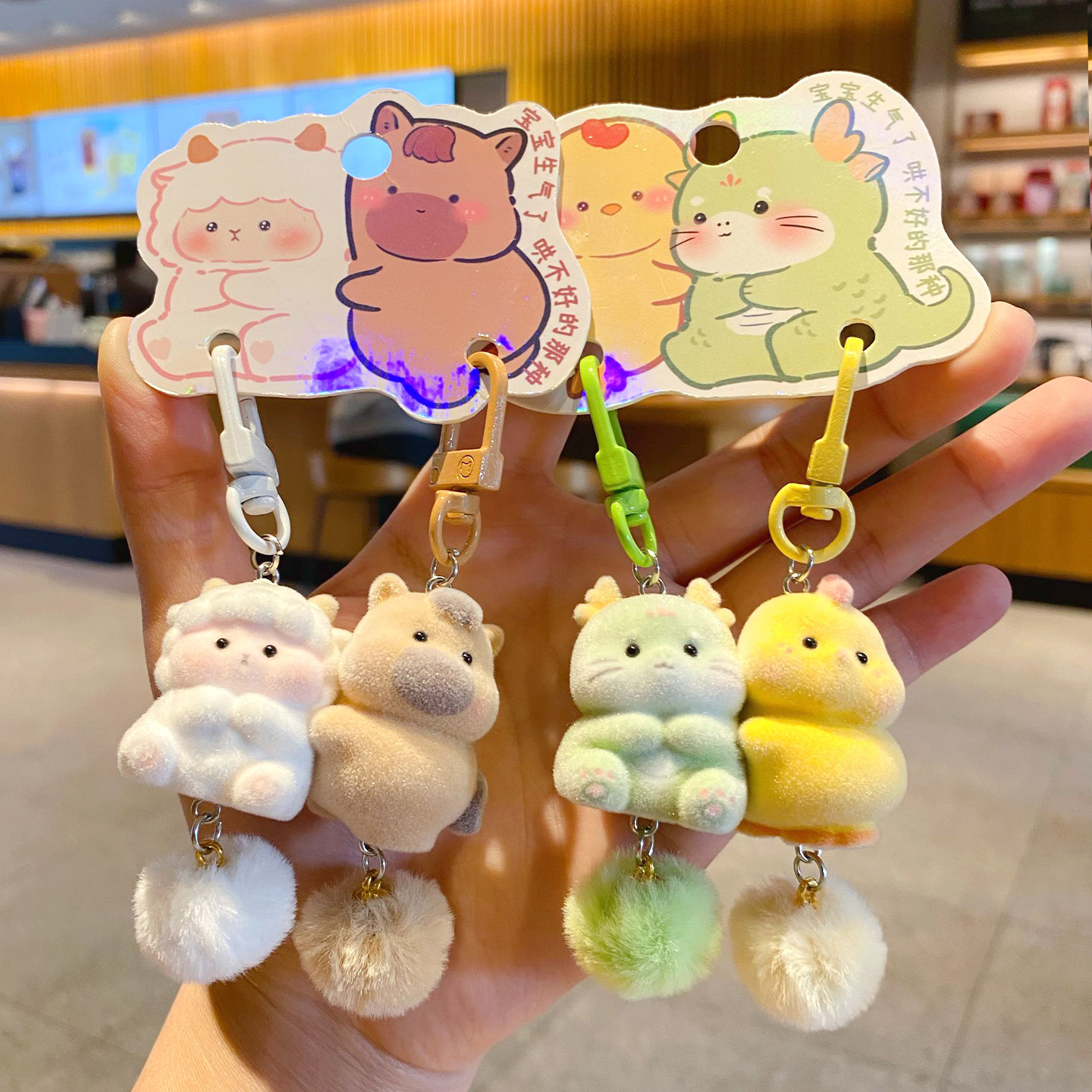 原创十二生肖植绒六合情侣钥匙扣2026马年书包挂件包包挂饰钥匙链