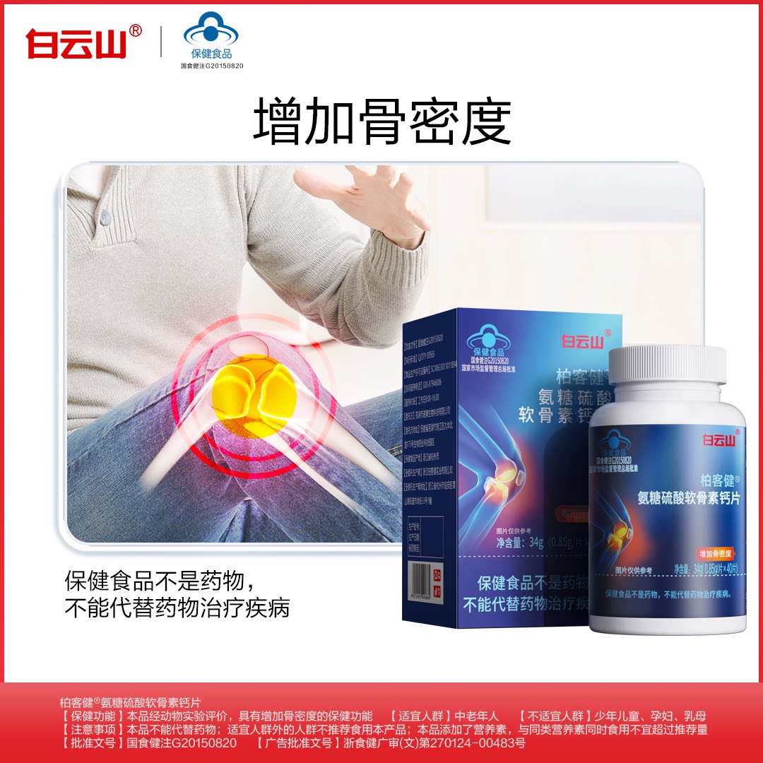 白云山氨糖软骨素钙片中老年人增加骨密度补钙关节膝盖官方正品