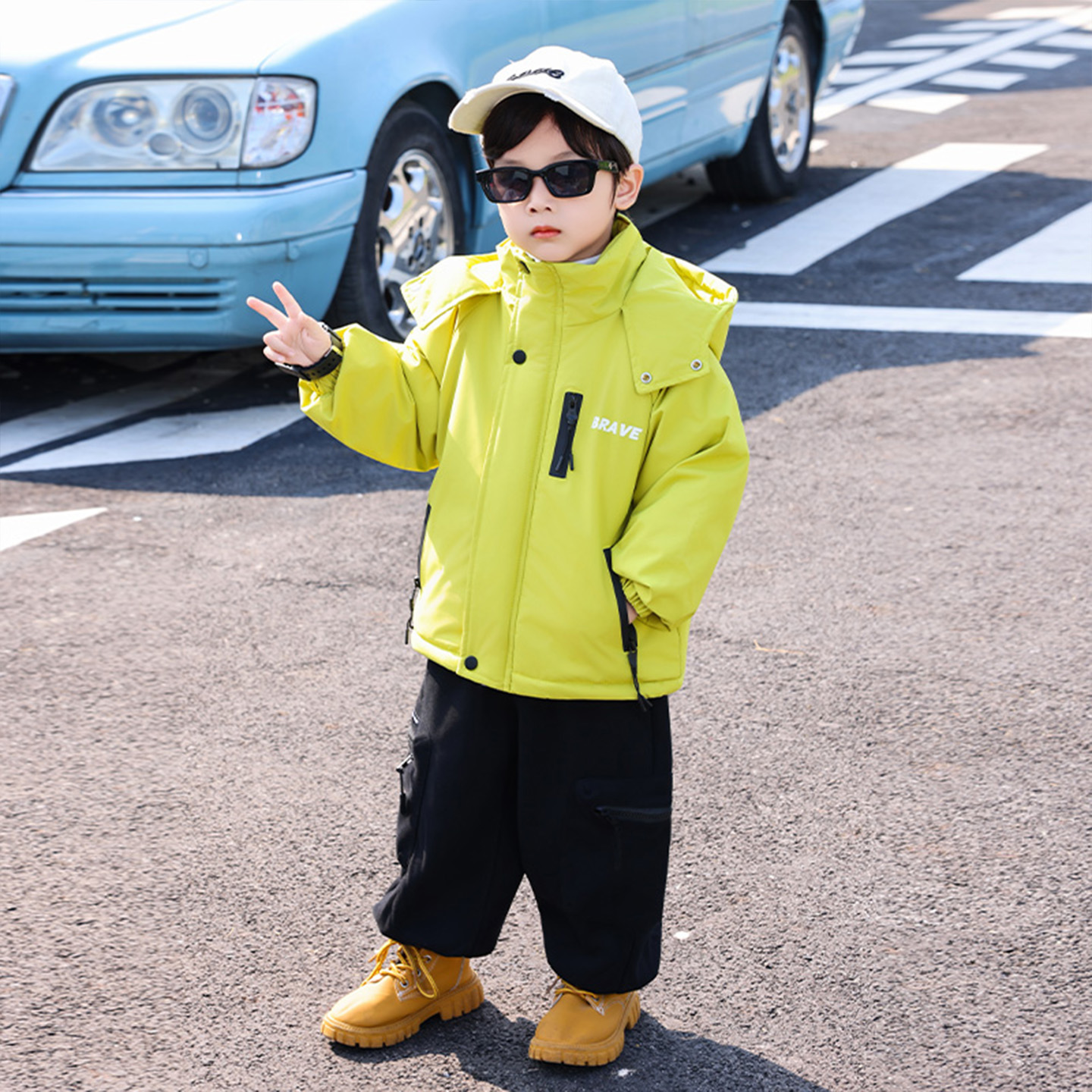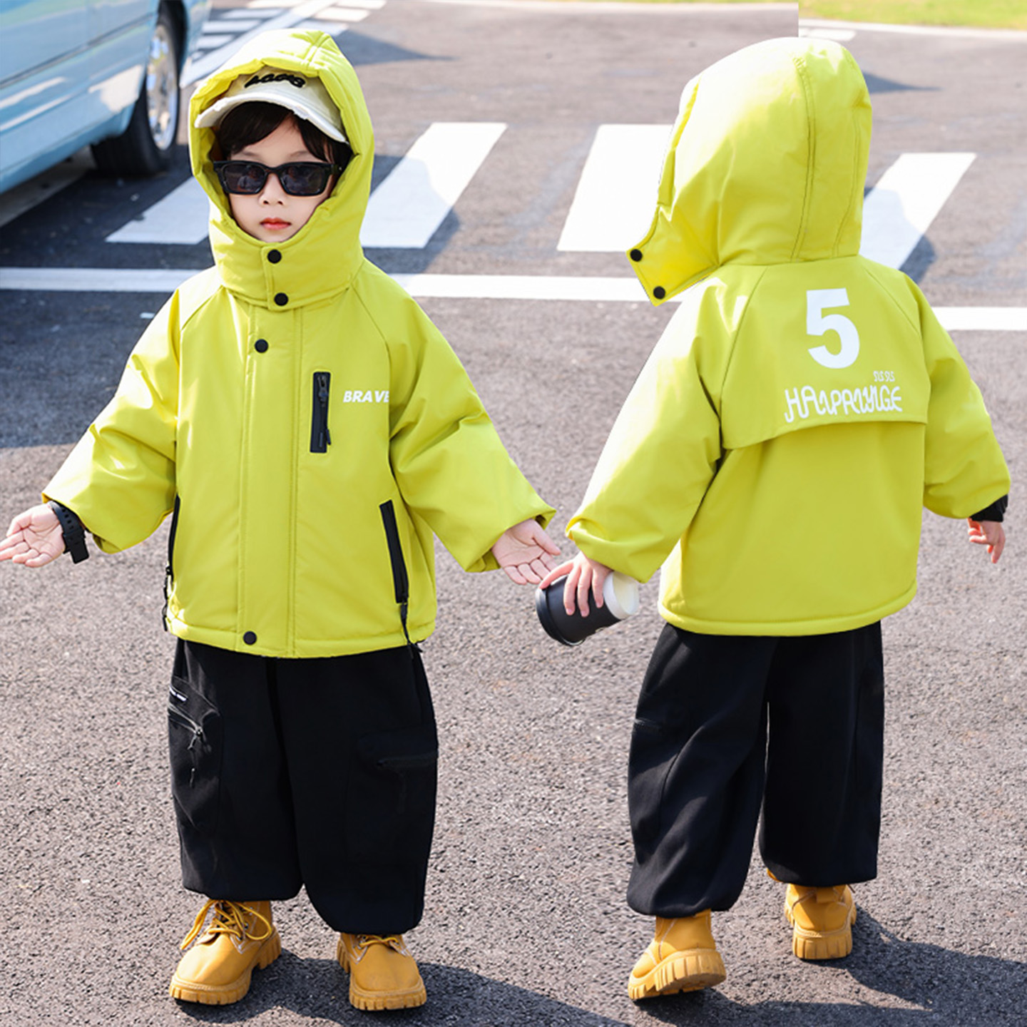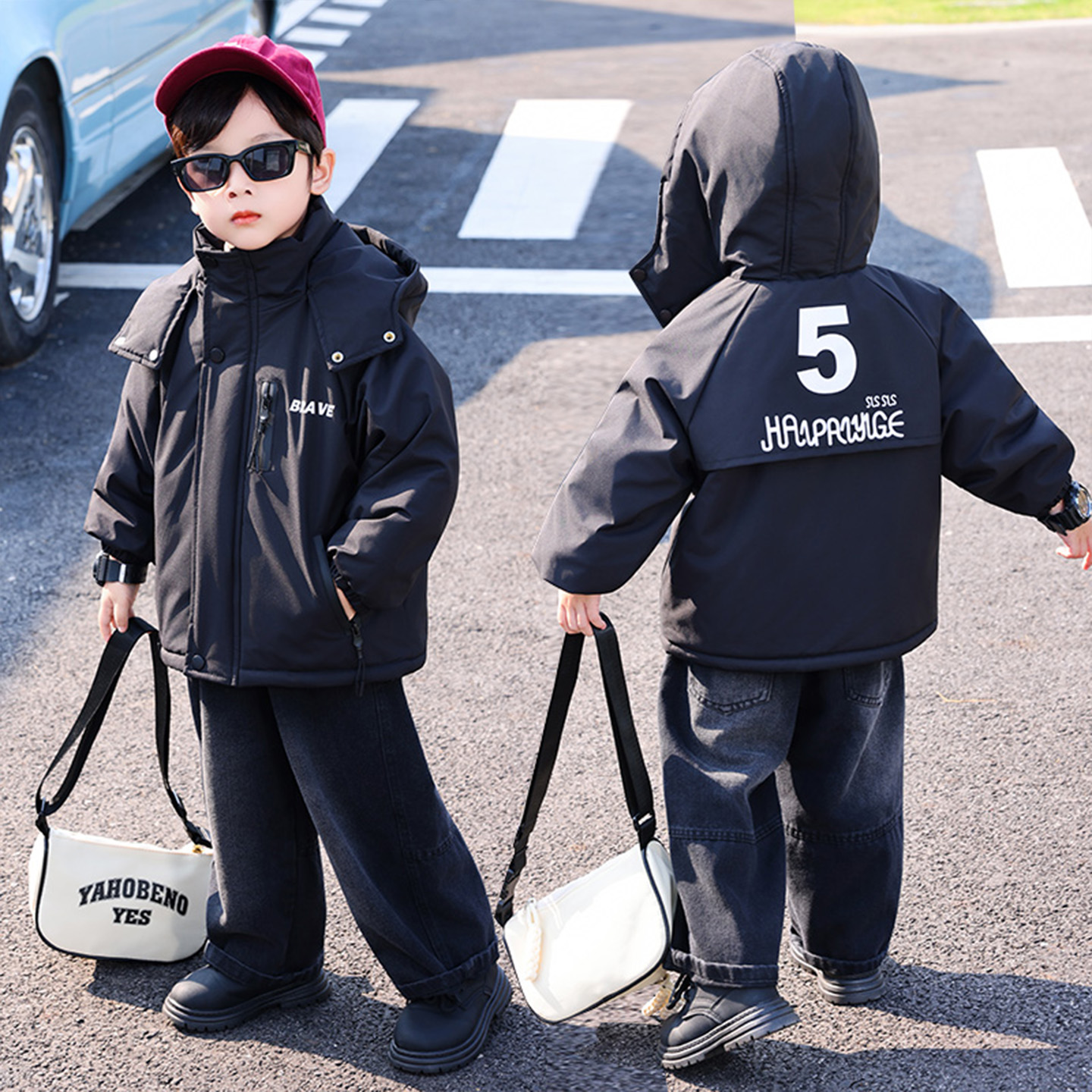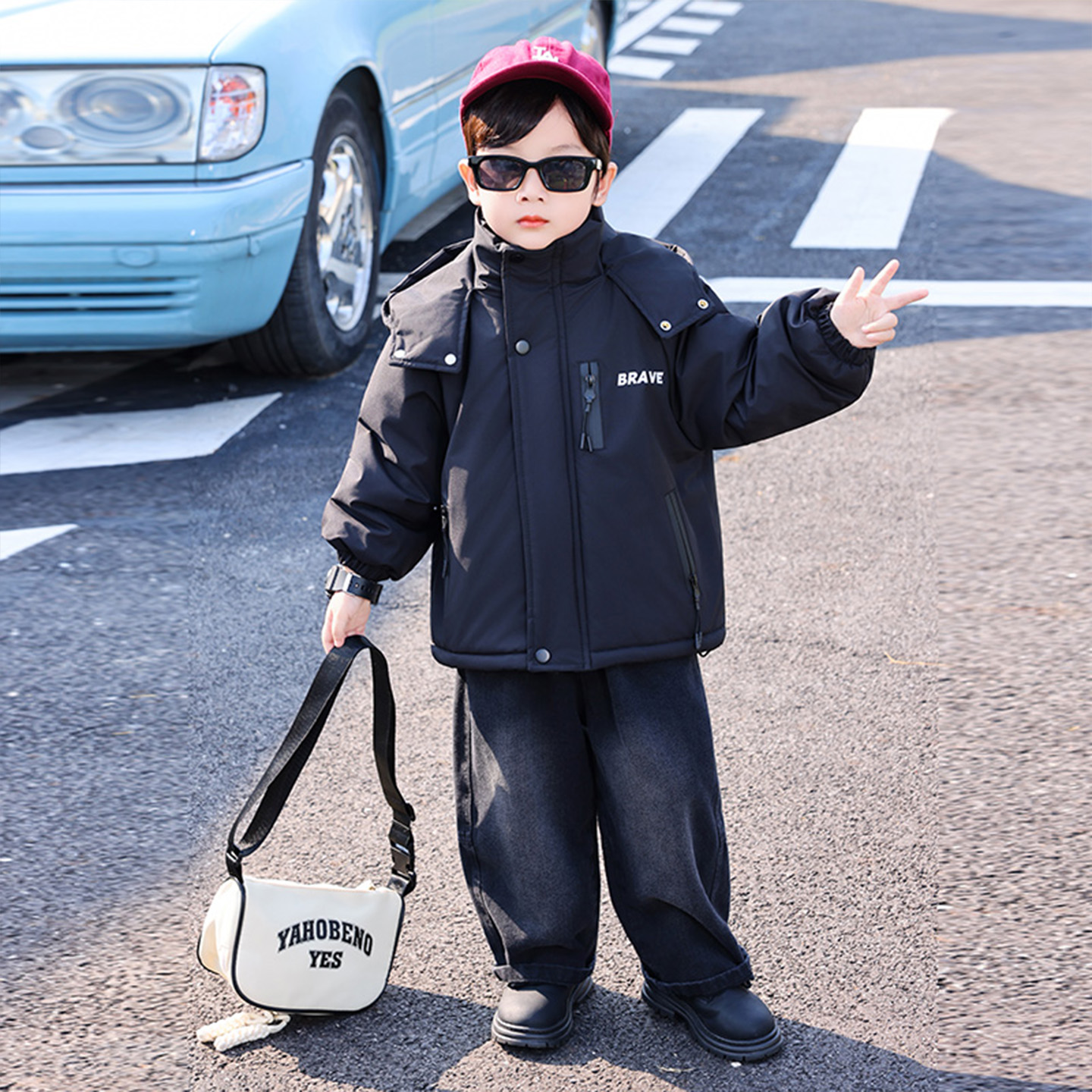 男童冬季时髦加绒连帽棉服2025款儿童冬装潮酷宝宝保暖棉衣派克服