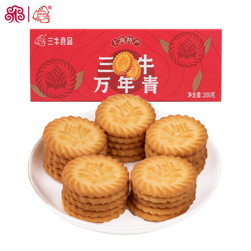 上海三牛万年青饼干200g*3酥性饼干特产休闲下午茶零食伴手礼盒