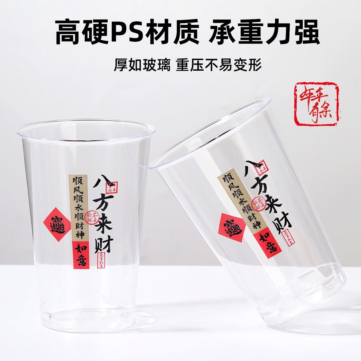 八方来财一次性杯子硬质航空杯塑料杯加厚透明过年招待杯家用饮杯