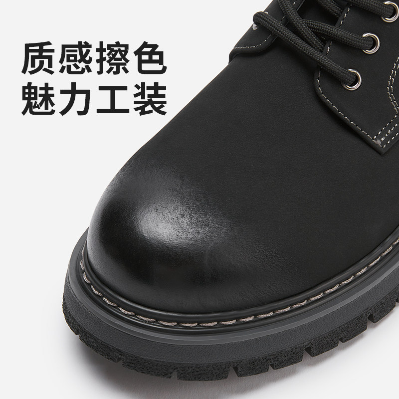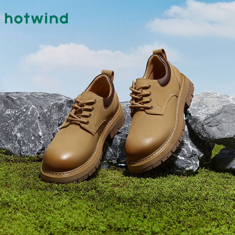 热风男鞋2025年秋季新款男士休闲鞋系带工装鞋厚底时尚大头鞋子