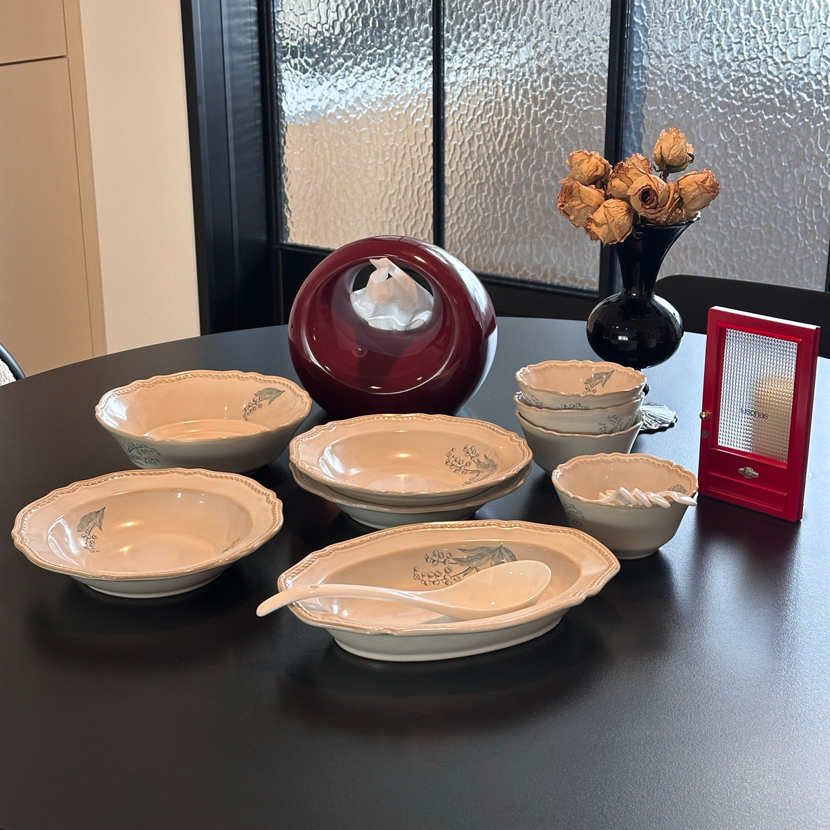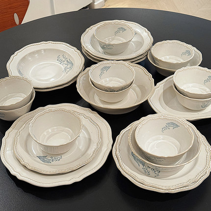 小红书法式碗碟套装餐具碗盘子复古家用乔迁新居中式新婚结婚礼物