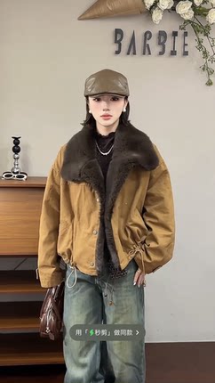 欧洲站2025冬季新时尚翻领狐狸毛拼接宽松显瘦百搭派克服外套2625