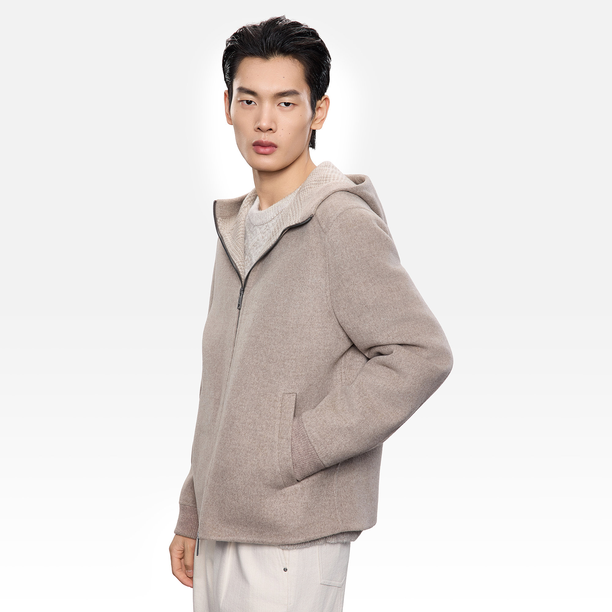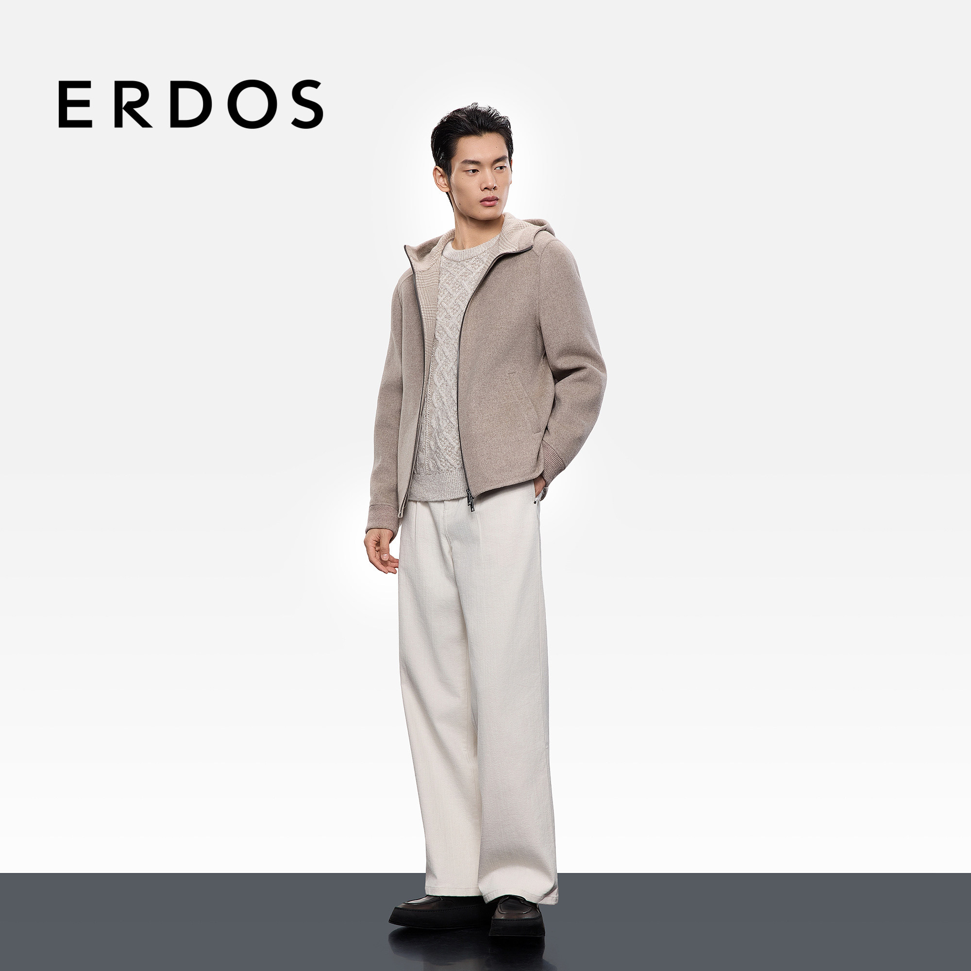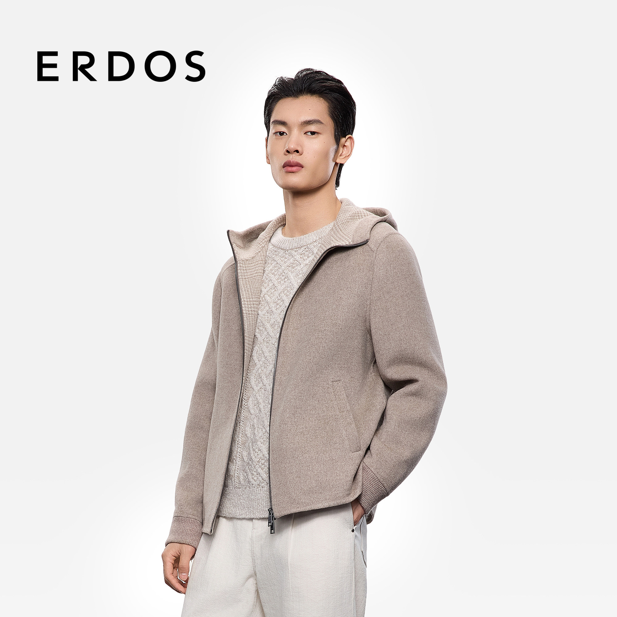 ERDOS 男装无染色羊毛夹克25年秋冬新品老钱风连帽休闲拉链外套