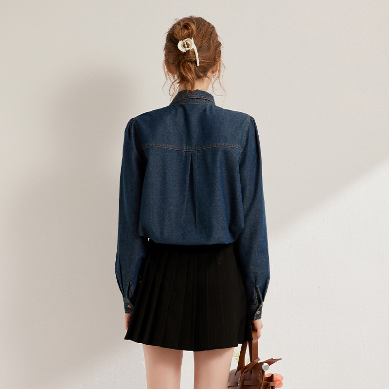 白鹿语单排扣长袖牛仔兔耳领衬衫