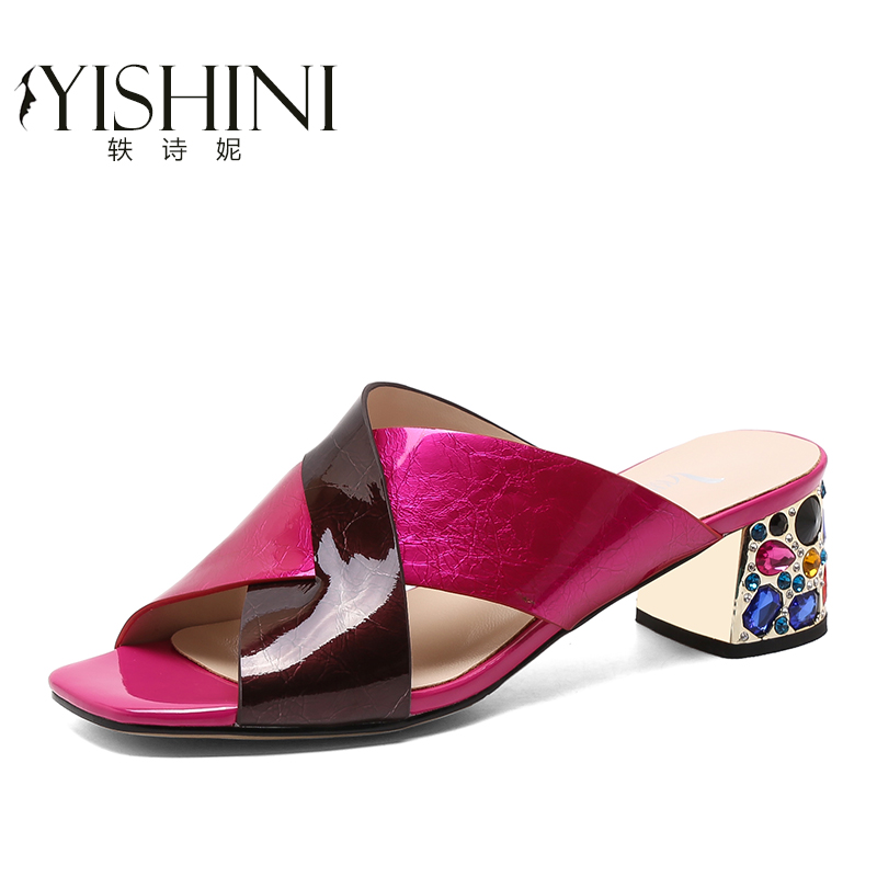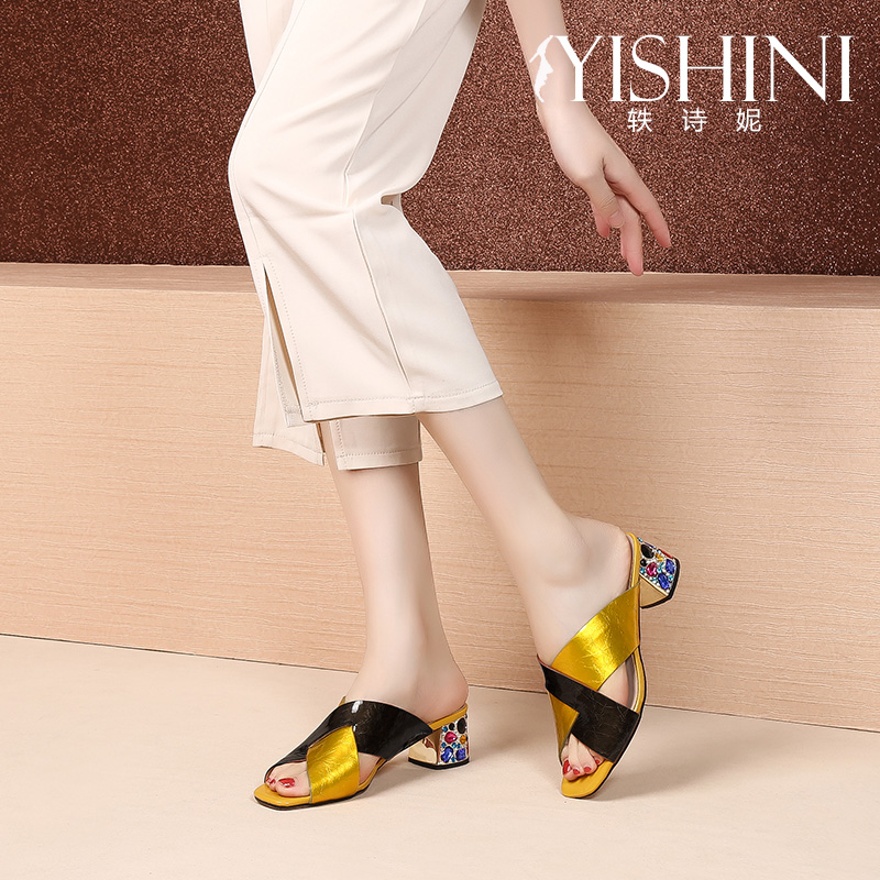 懒人夏季新款时尚交叉粗跟凉拖鞋