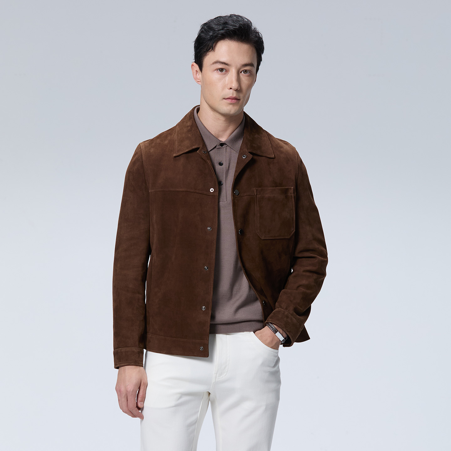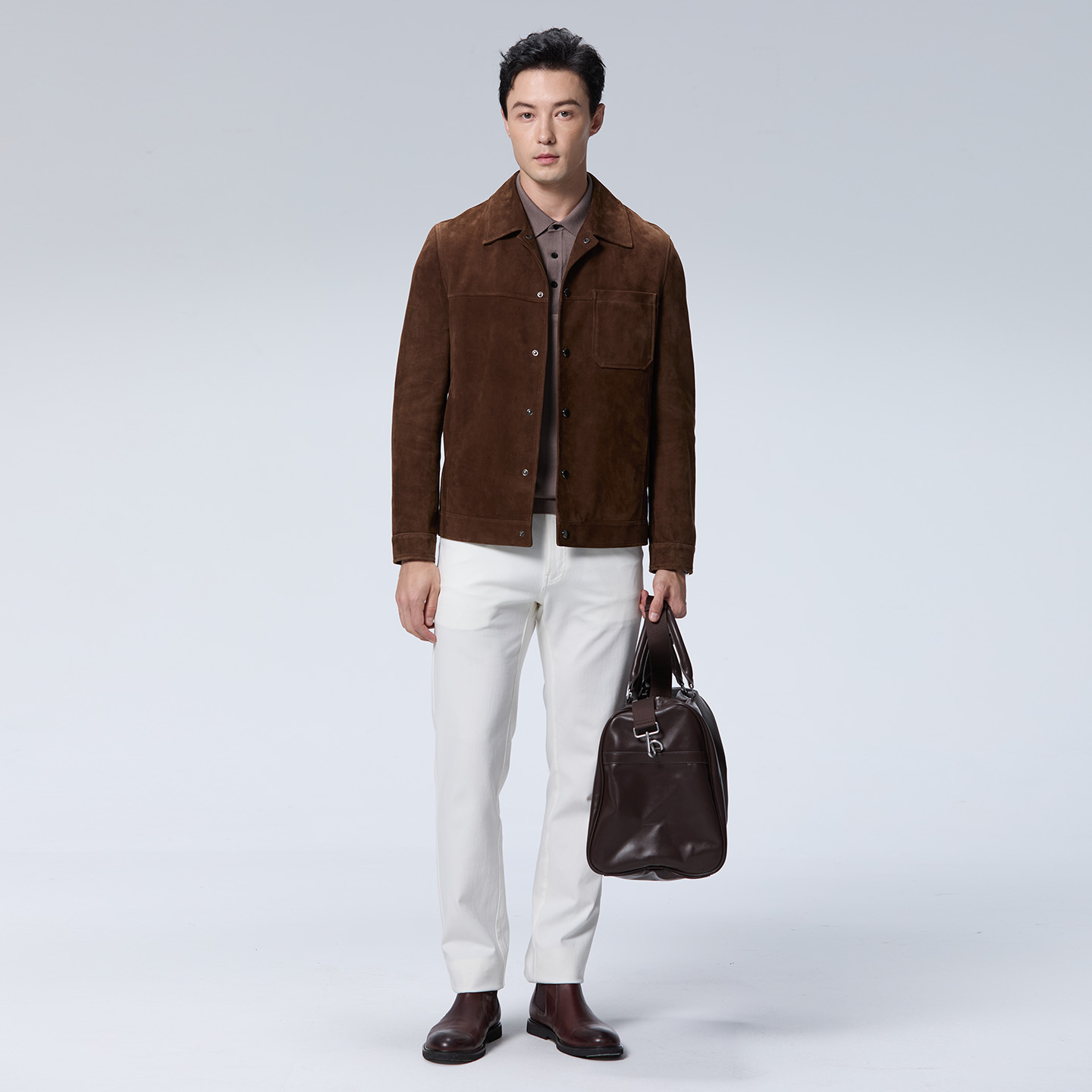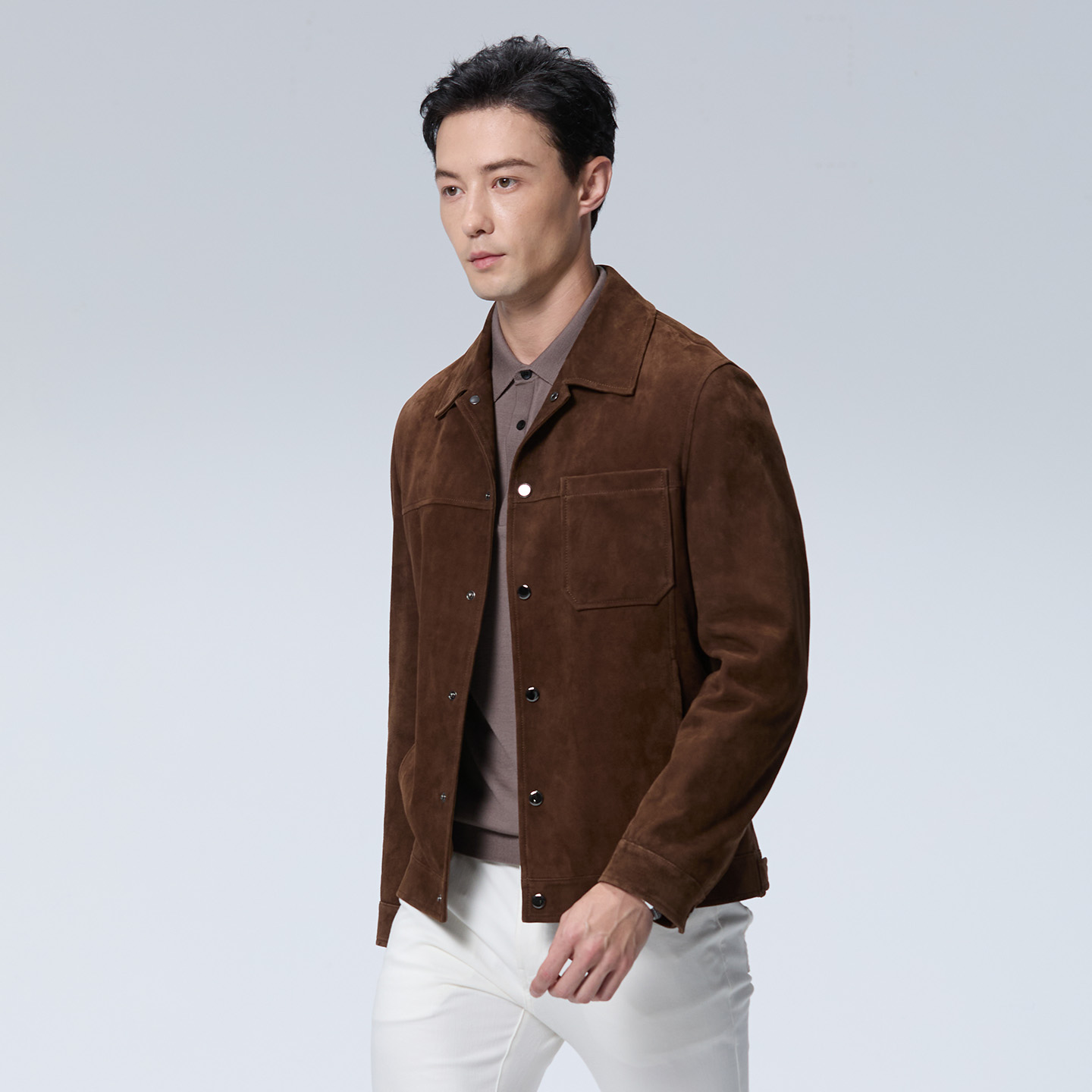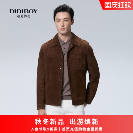 【甄选羊皮】DIDIBOY2025年秋季新款咖啡色翻领夹克男士短款皮衣