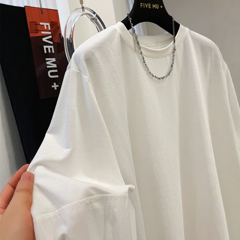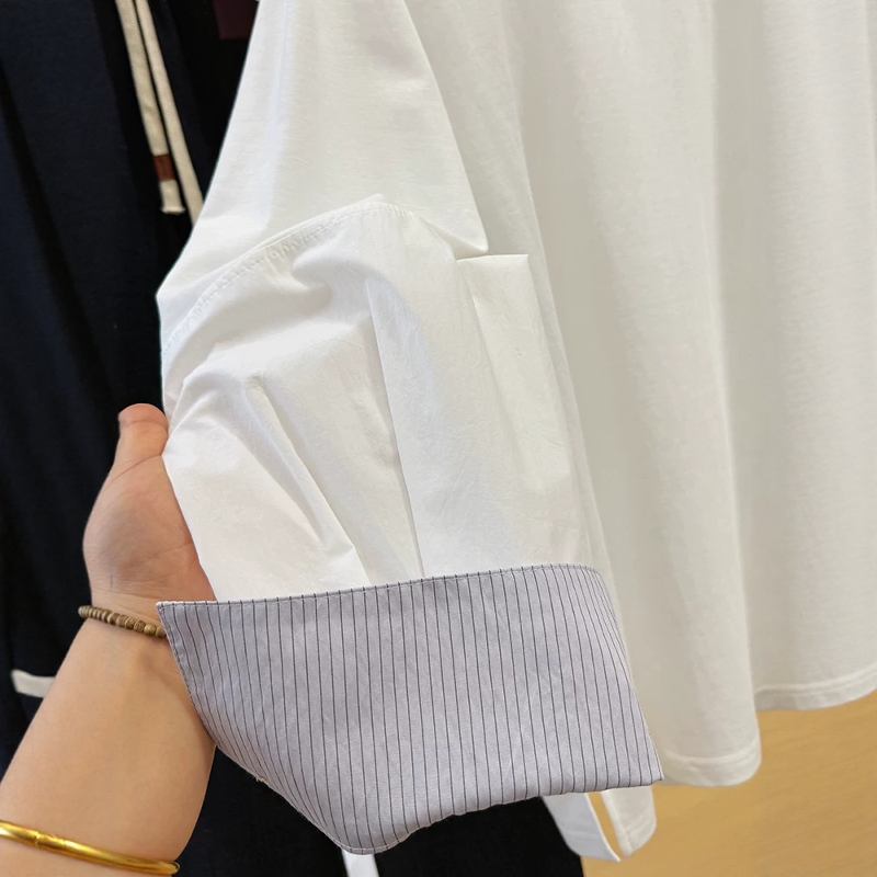 衬衫拼接白色t恤女长袖2025秋季新款大码宽松薄款圆领打底衫上衣