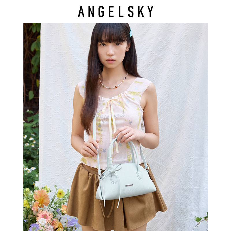 ANGELSKY斜挎包粉色贝壳包包女小众新款保龄球包秋冬手提包单肩