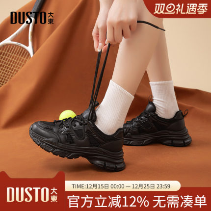 大东dd黑色老爹鞋女款2025新款秋季百搭休闲鞋厚底增高运动鞋女鞋