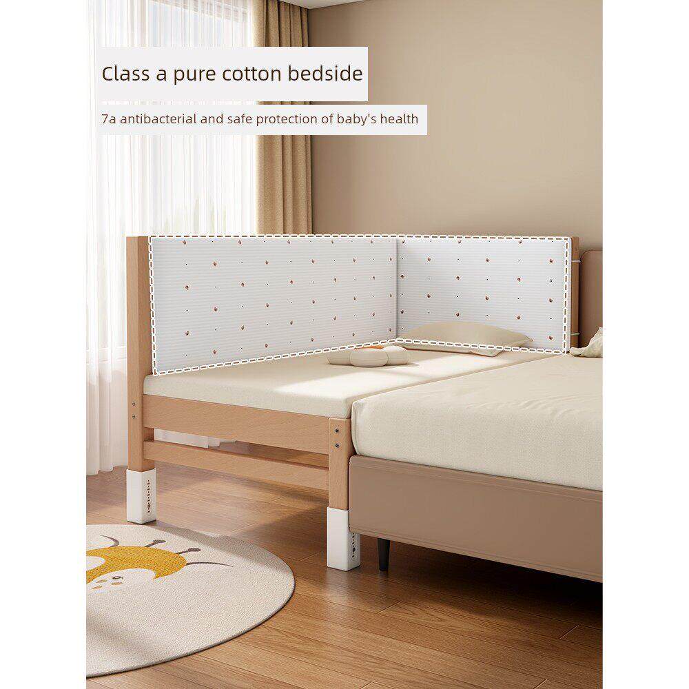 北欧轻奢榉木儿童拼接床加宽床边床宝宝小床实木带护栏定制婴儿床