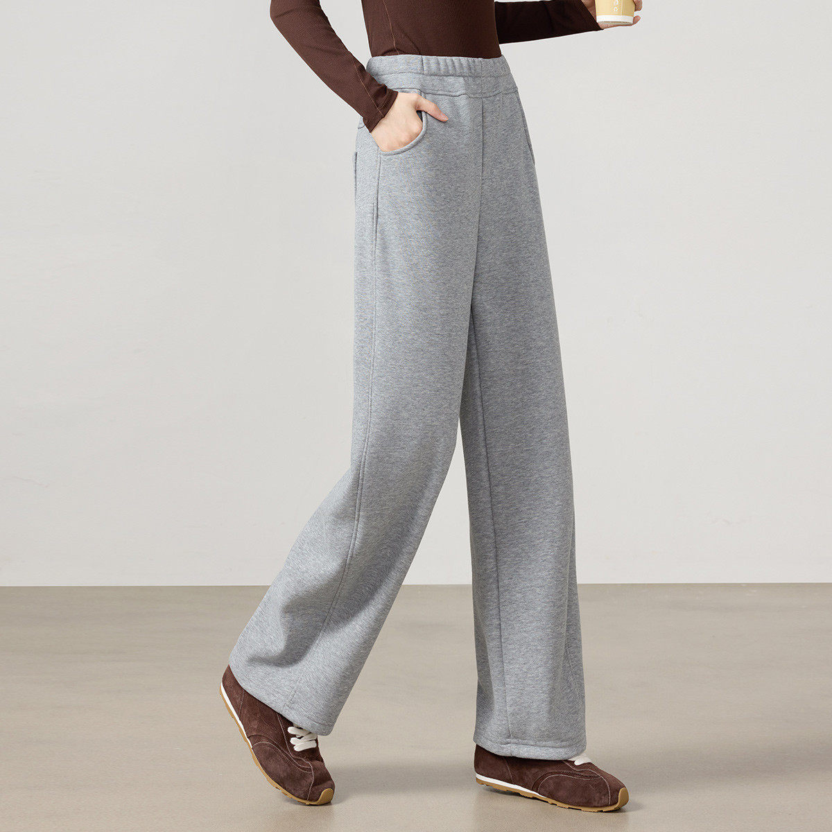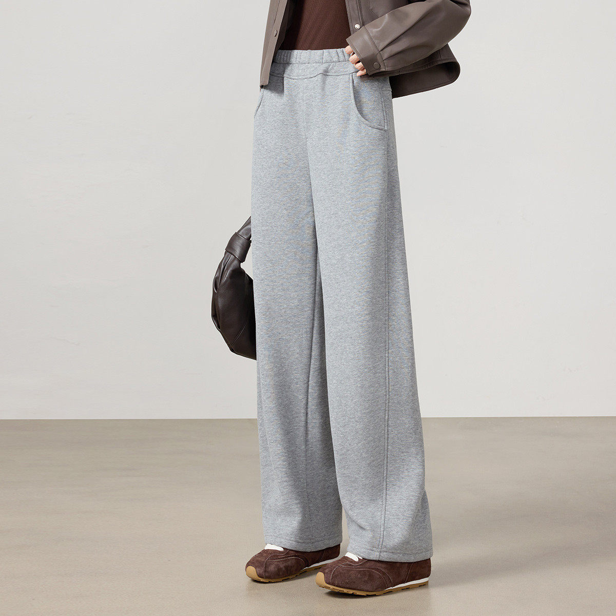 茵曼2025冬季新款加厚保暖休闲裤子女宽松直筒显瘦高腰运动户外