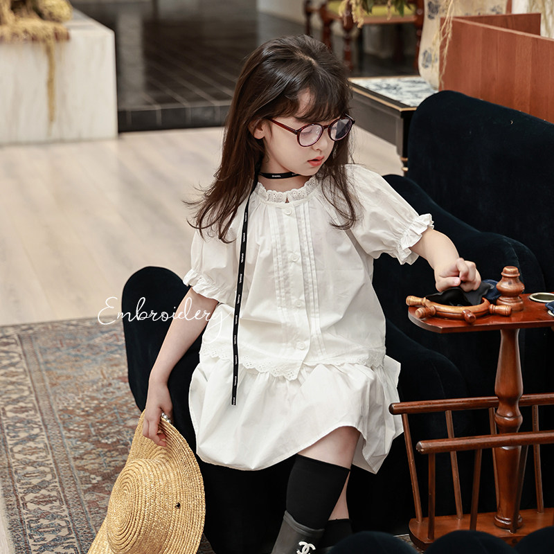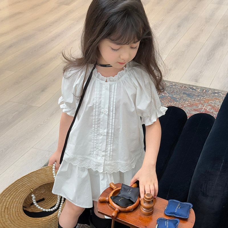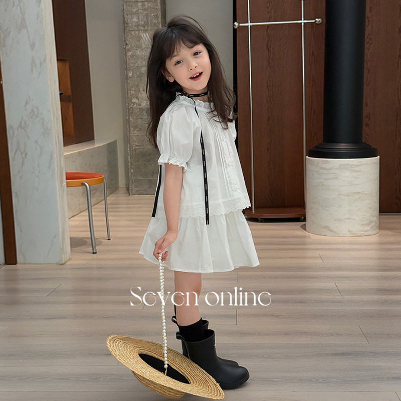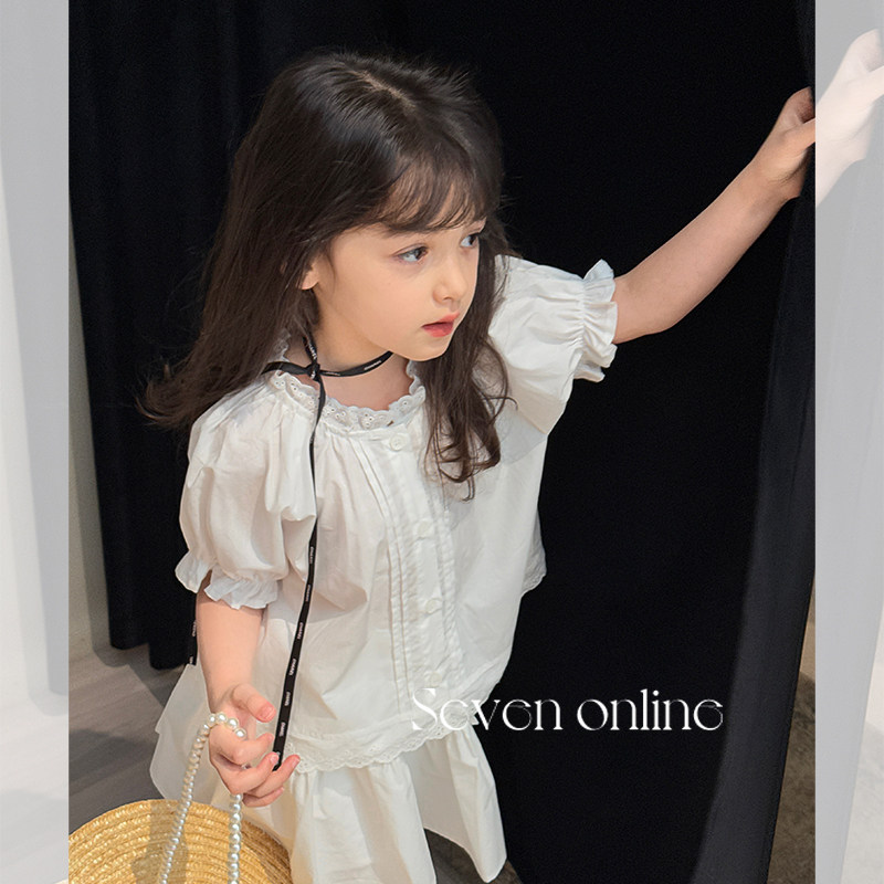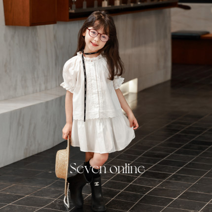 柒号童仓女大童韩版时尚泡泡袖衬衫套装夏装新款女童休闲半身裙潮