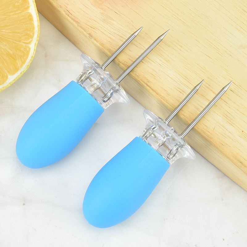 创意厨房工具橡胶手柄不锈钢玉米针 烧烤用具 BBQ玉米叉烧烤签