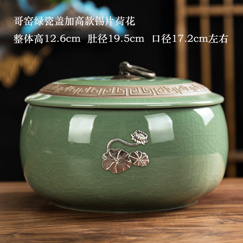 中式大号茶洗带盖哥窑瓷盖陶瓷水洗铜扣茶渣缸办公家居日用式水孟