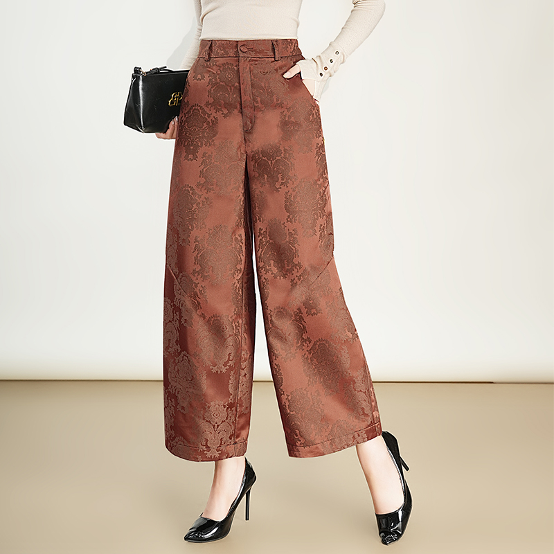 实拍 女2025秋季新款大码百搭浮雕提花裤宽松弯刀裤女士休闲裤子
