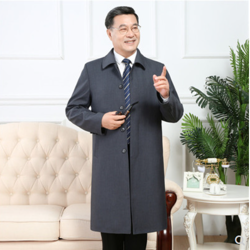 中老年风衣男长款过膝秋季中年男士外套翻领爸爸装中长款大衣春秋