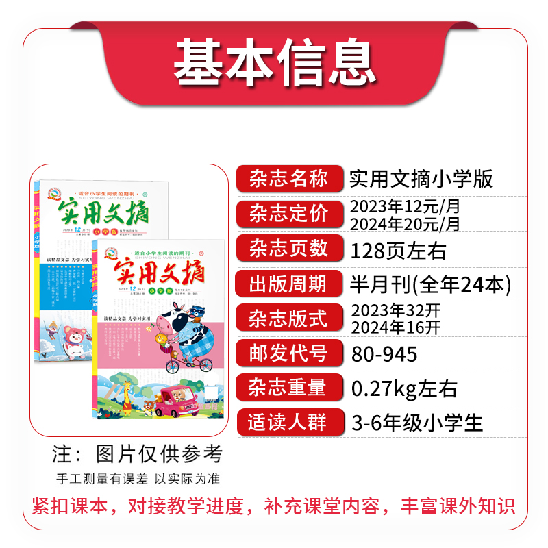 实用文摘小学版杂志2025年1-9/10/11月/全年半年订阅2024年/2023/2021年小学生作文素材儿童文学青少年课外阅读中高年级期刊