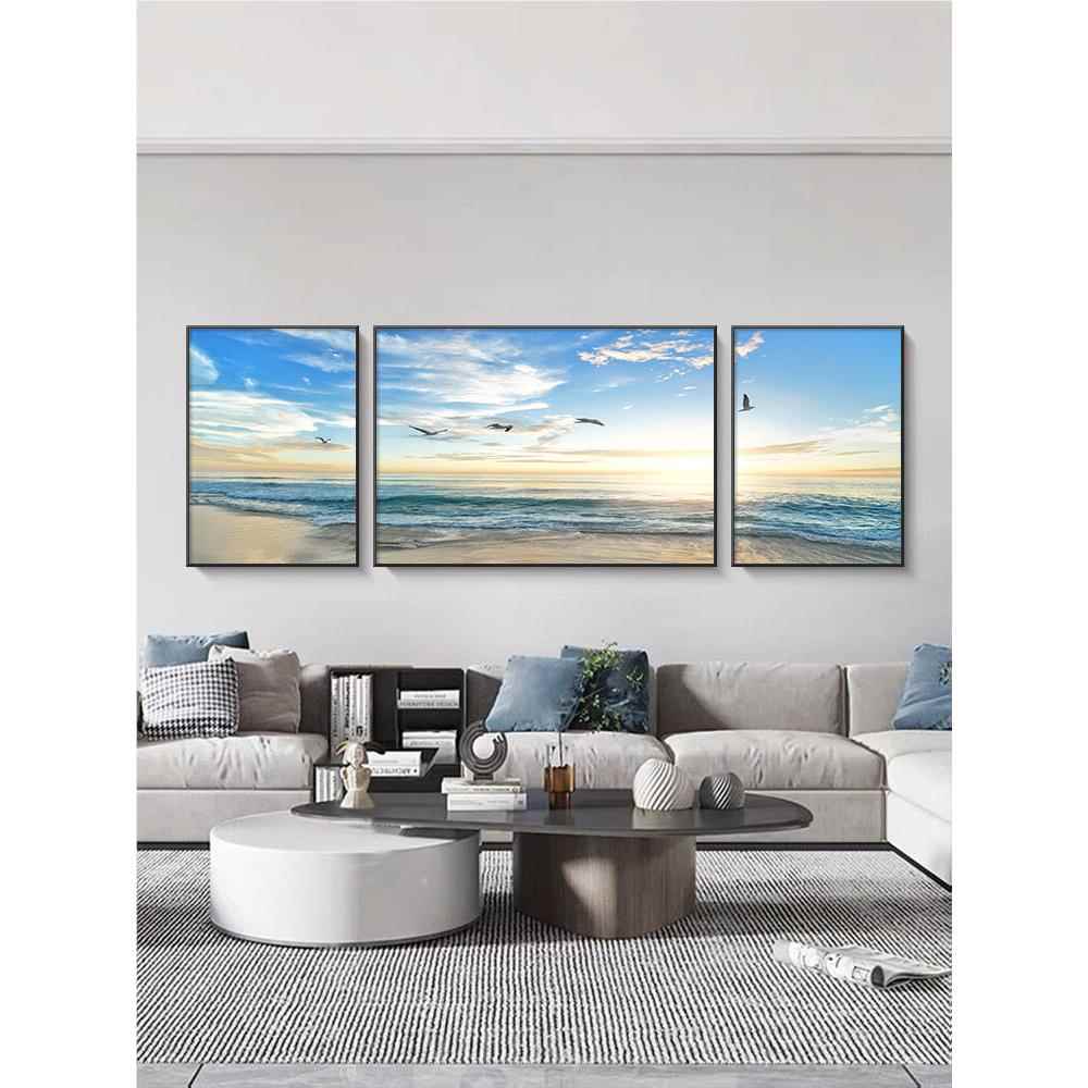 新款202新款厅装饰画沙发背景画墙3挂客现代简约大气中堂三联墙壁