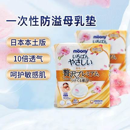 日本本土尤妮佳moony产后防溢乳垫防漏轻薄透气乳贴102片高端版